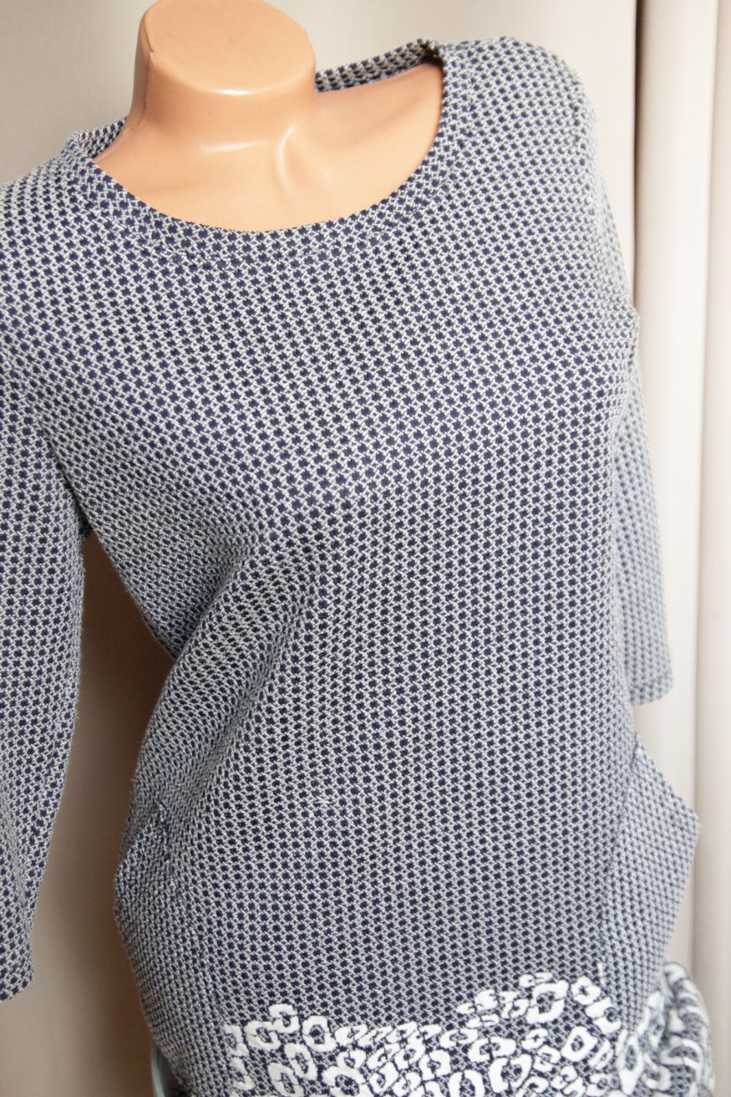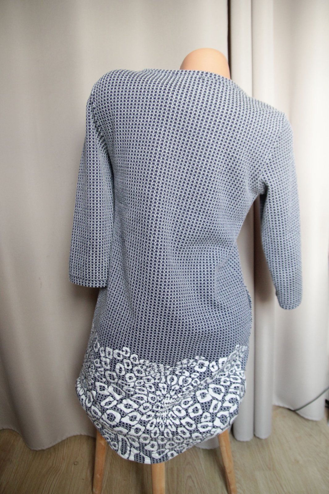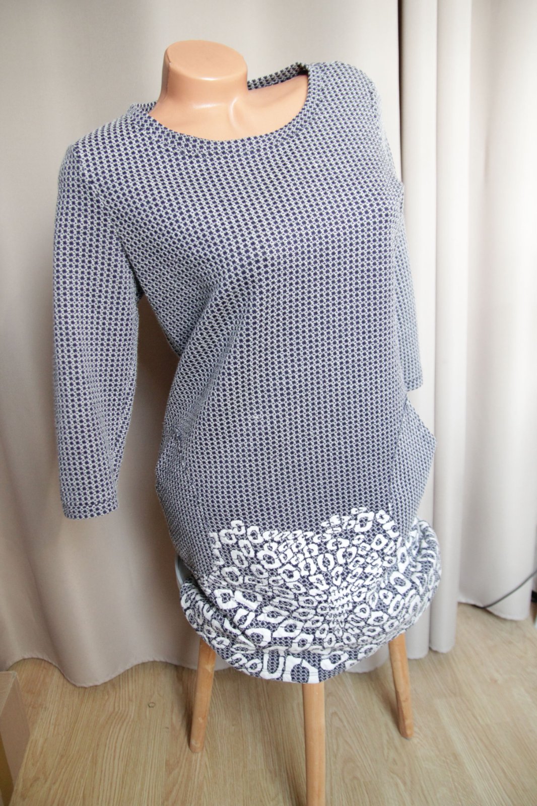 Modro biele vzorované šaty, veľkosť M/L. Na bokoch majú vrecká. Rukávy majú cca 3/4 dĺžku.