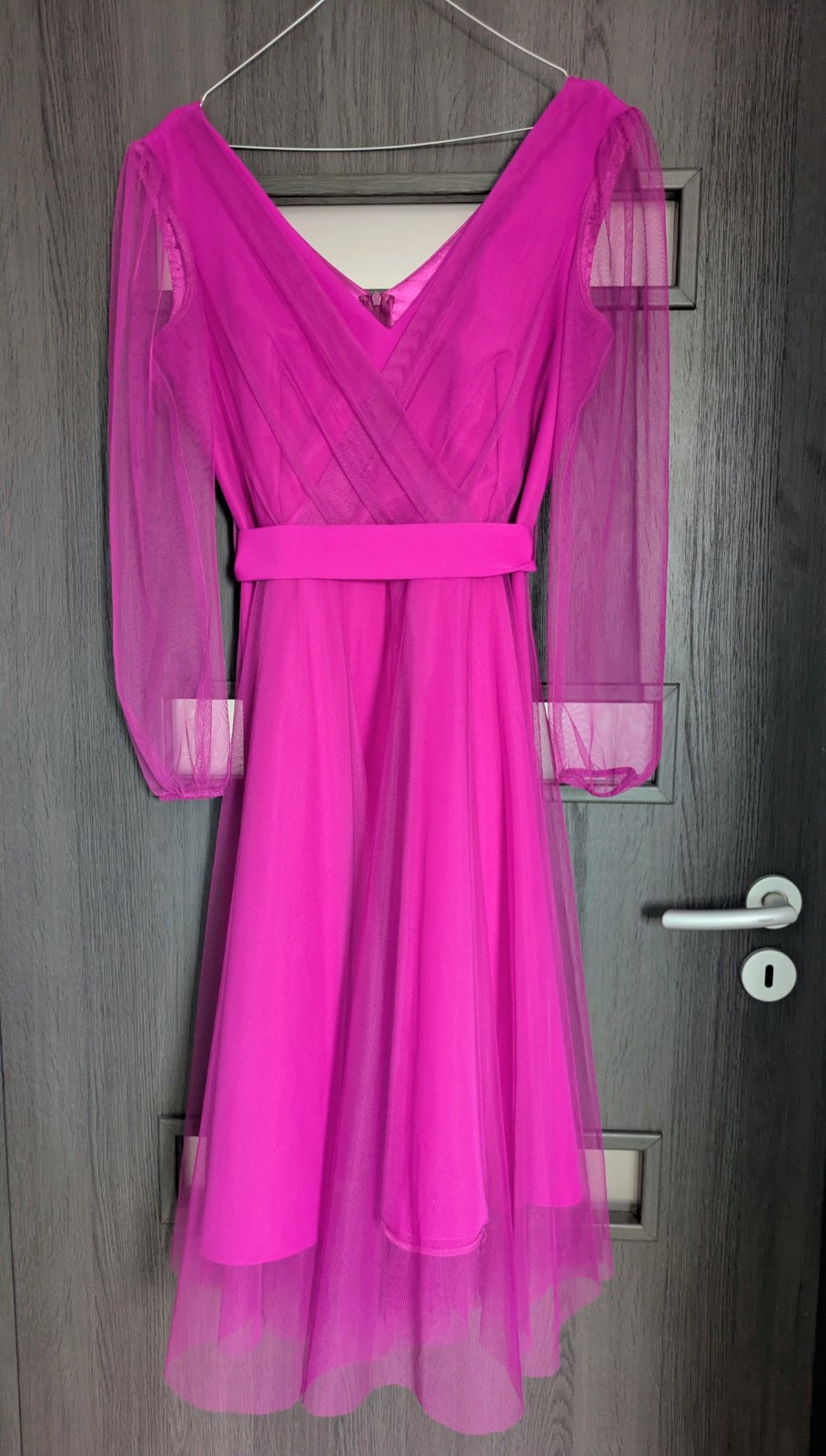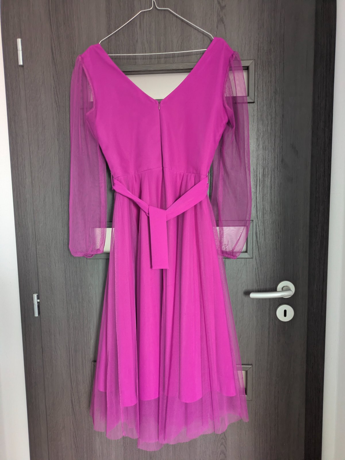 Prekrásne cyklamenové šaty v top stave! Opasok sa da vymenit alebo nosit aj bez opasku. Vzadu zips až nižšie od pasa pre ľahké obliekanie, podšité spodničkou. Veľmi elegantné. Celková dlžka 99cm, š...