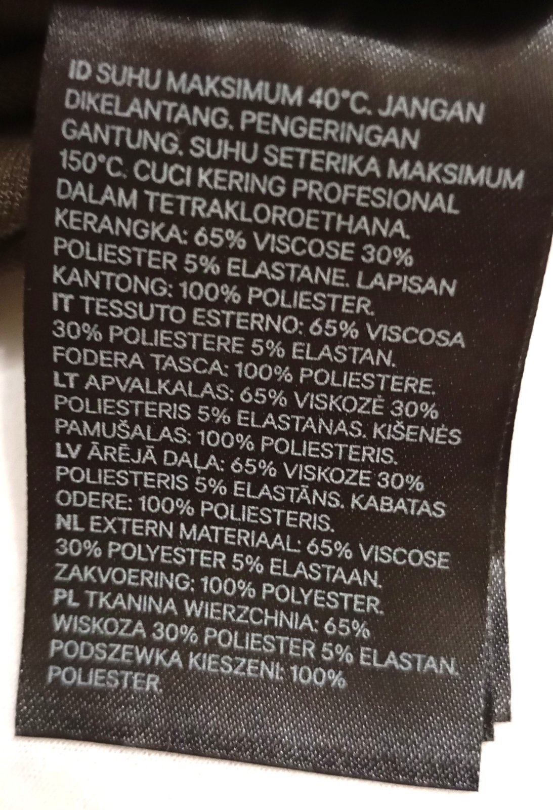 Prosím, berte na vedomie inštrukcie pre údržbu a starostlivosť napísané na štítku vo vnútri (viď. fotografie).