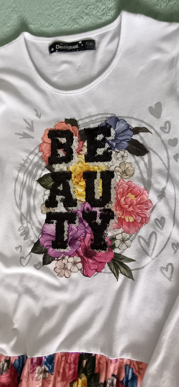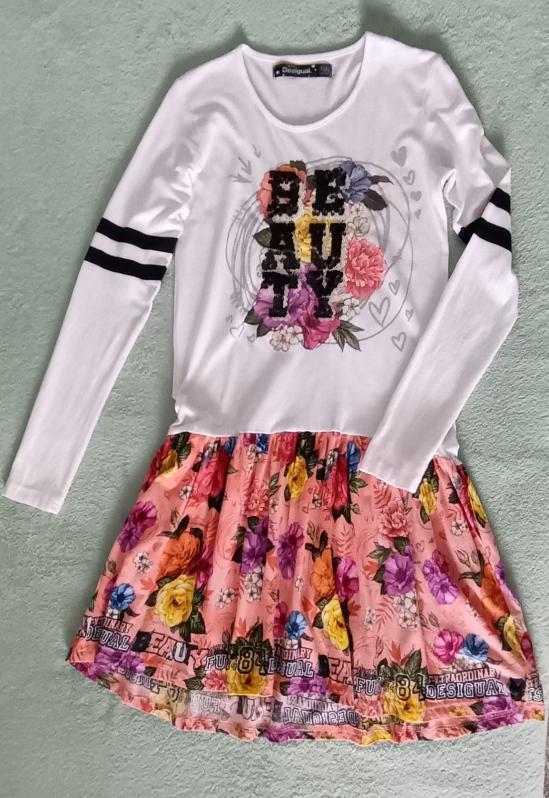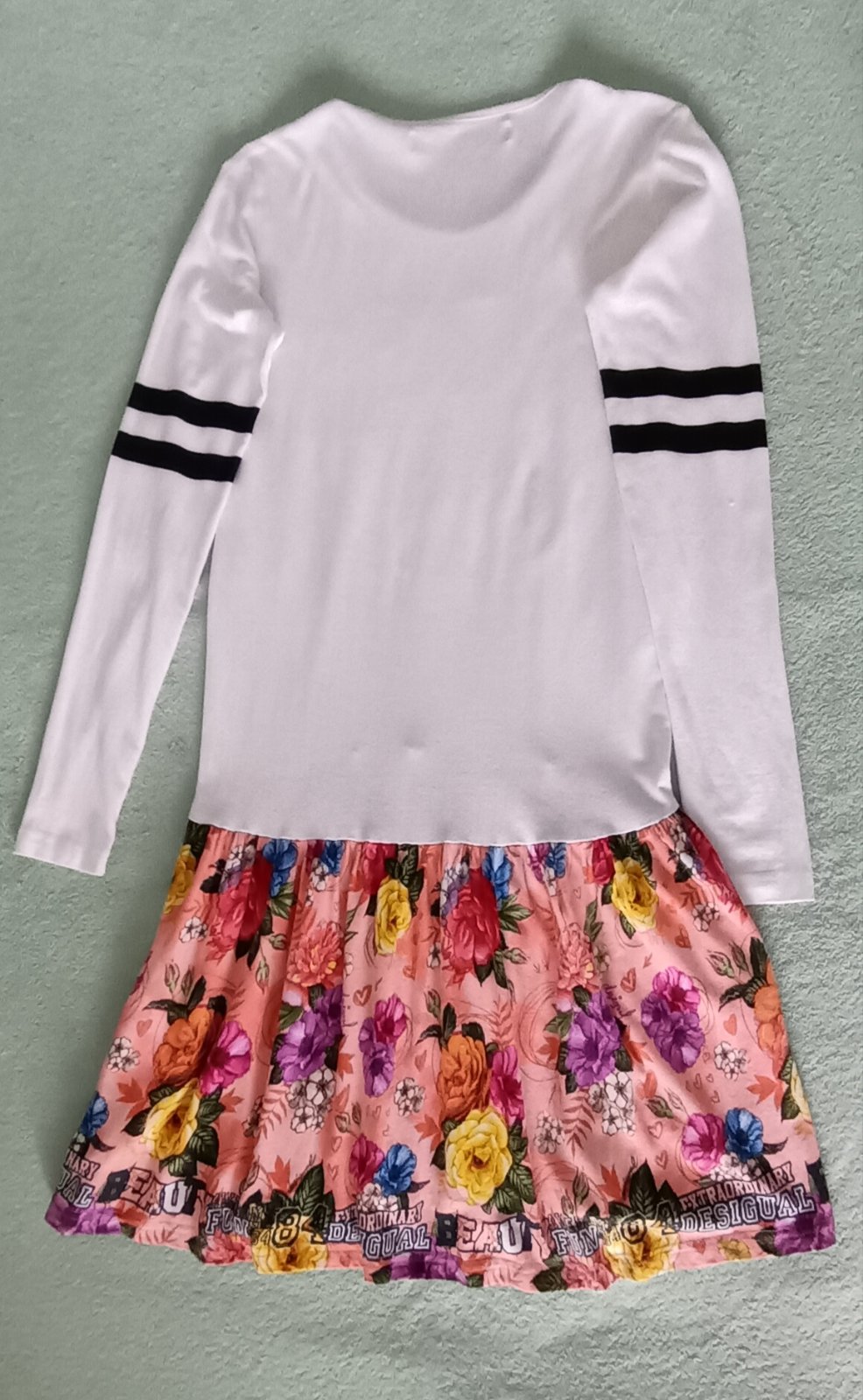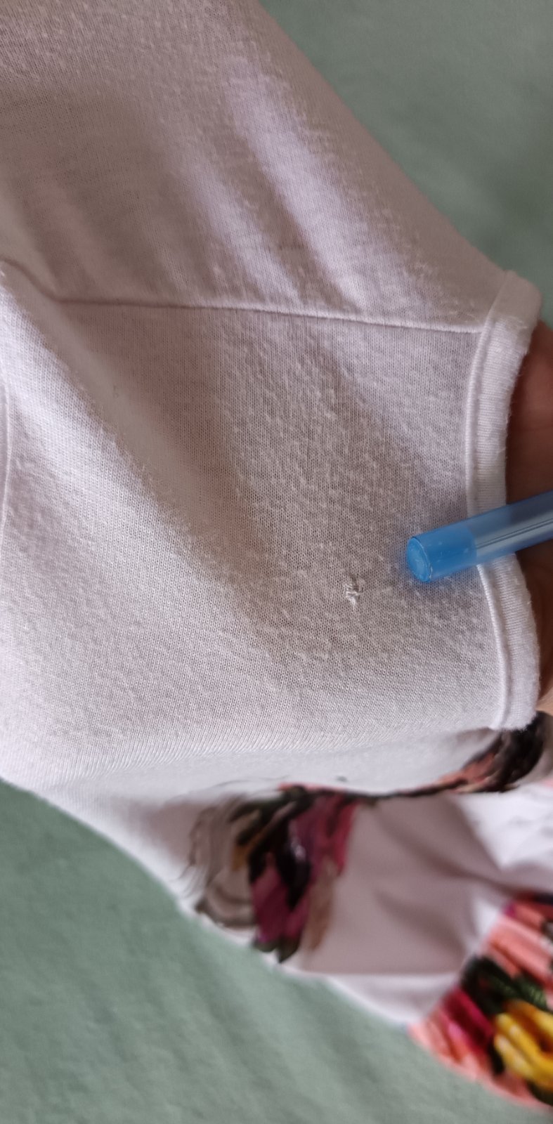 Nádherné a pohodlné, celé z tričkoviny, 50% bavlna, 50% viskóza, padavé, flitre otáčacie, pekný nosený stav, na pravom lakti a pri ramene zašité pustené očko, viď foto, zohľadnené v cene.