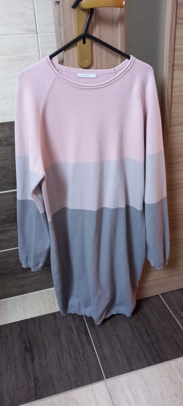 Teplé šaty so stojačikom na zips, uvedená veľkosť 38, ale sedia na väčšie M- L. Pekná púdrová farba, iba párkrát oblečené. Pri výmene 8€