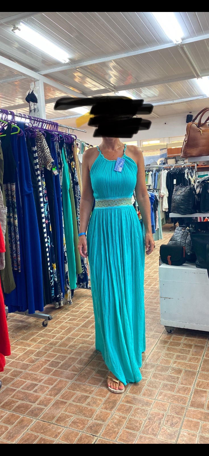 Šaty su oblečene na vyške 164cm, rozmery nafotene. V pase a vzadu na chrbte gumička