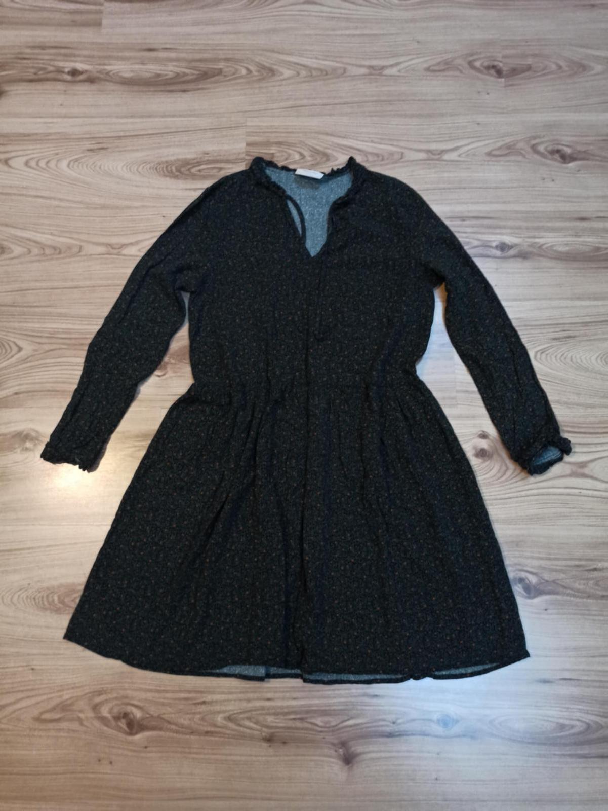 Krásne šaty vzhľadovo ako koženka, tylove rukávy, velk S/M