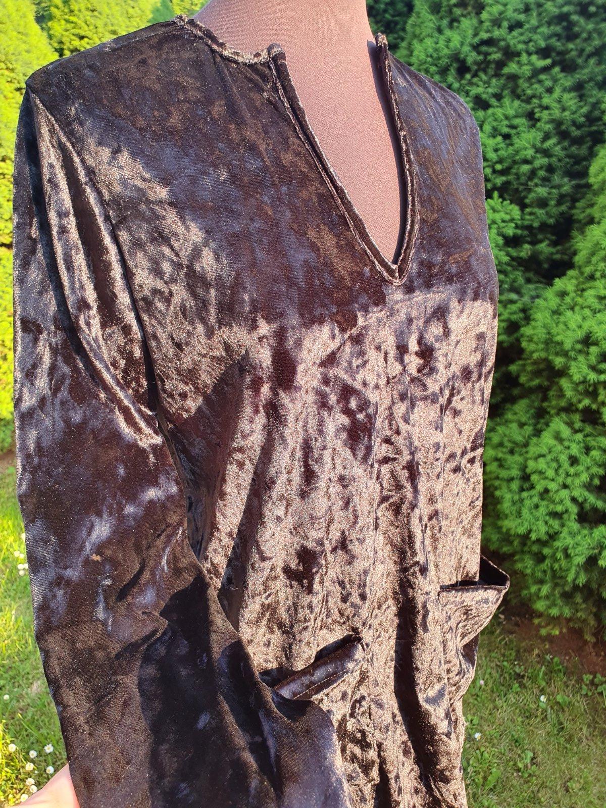 100%stav, strečové, absolútne nekrčive, nežehlia sa. Po bokoch sú nariasené. Dĺžka 100cm, obvod hrudníka 2x 37cm, rukáv 60cm