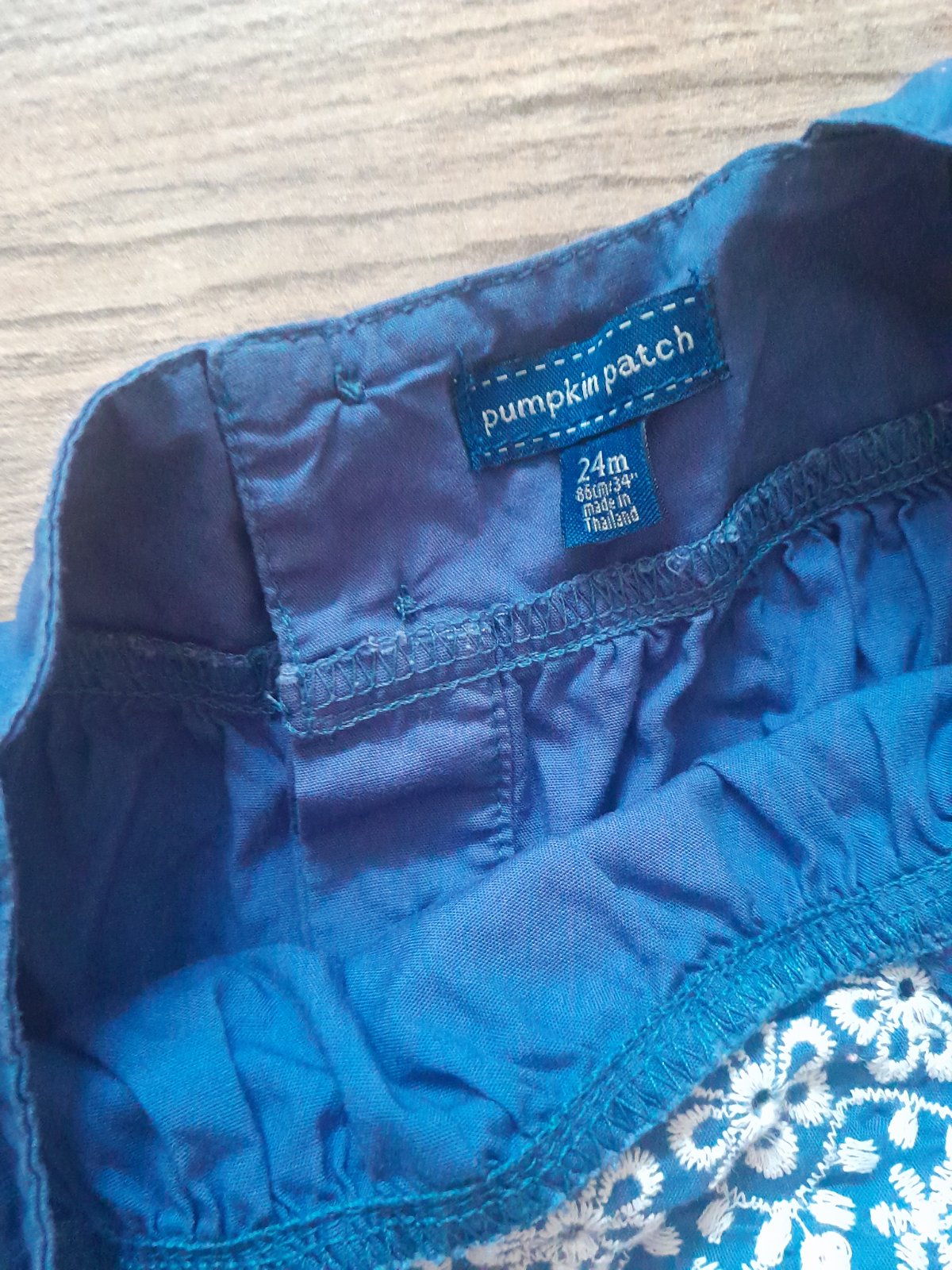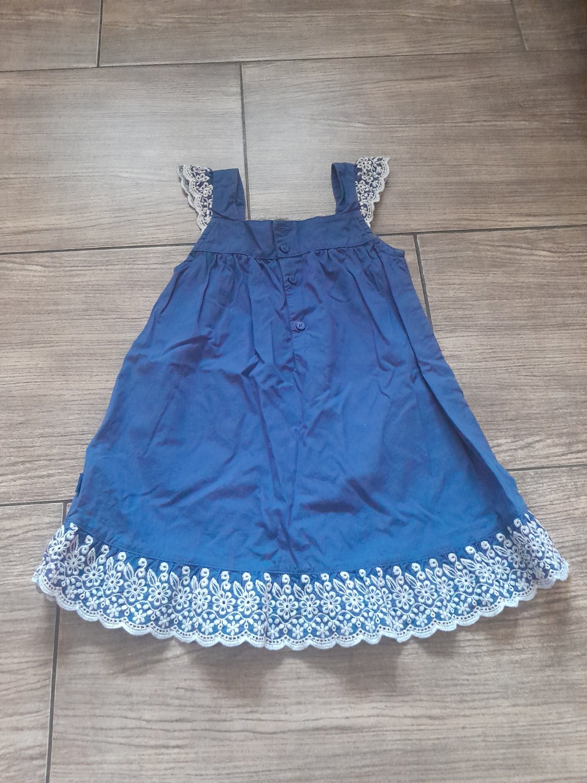 Dievčenské šaty, tmavomodrej farby s bielymi bodkami, elastické, vzadu zips, bez rukávov, vhodné na spol. príležitosť, veľkosť 92 (1/2 -2 roky).