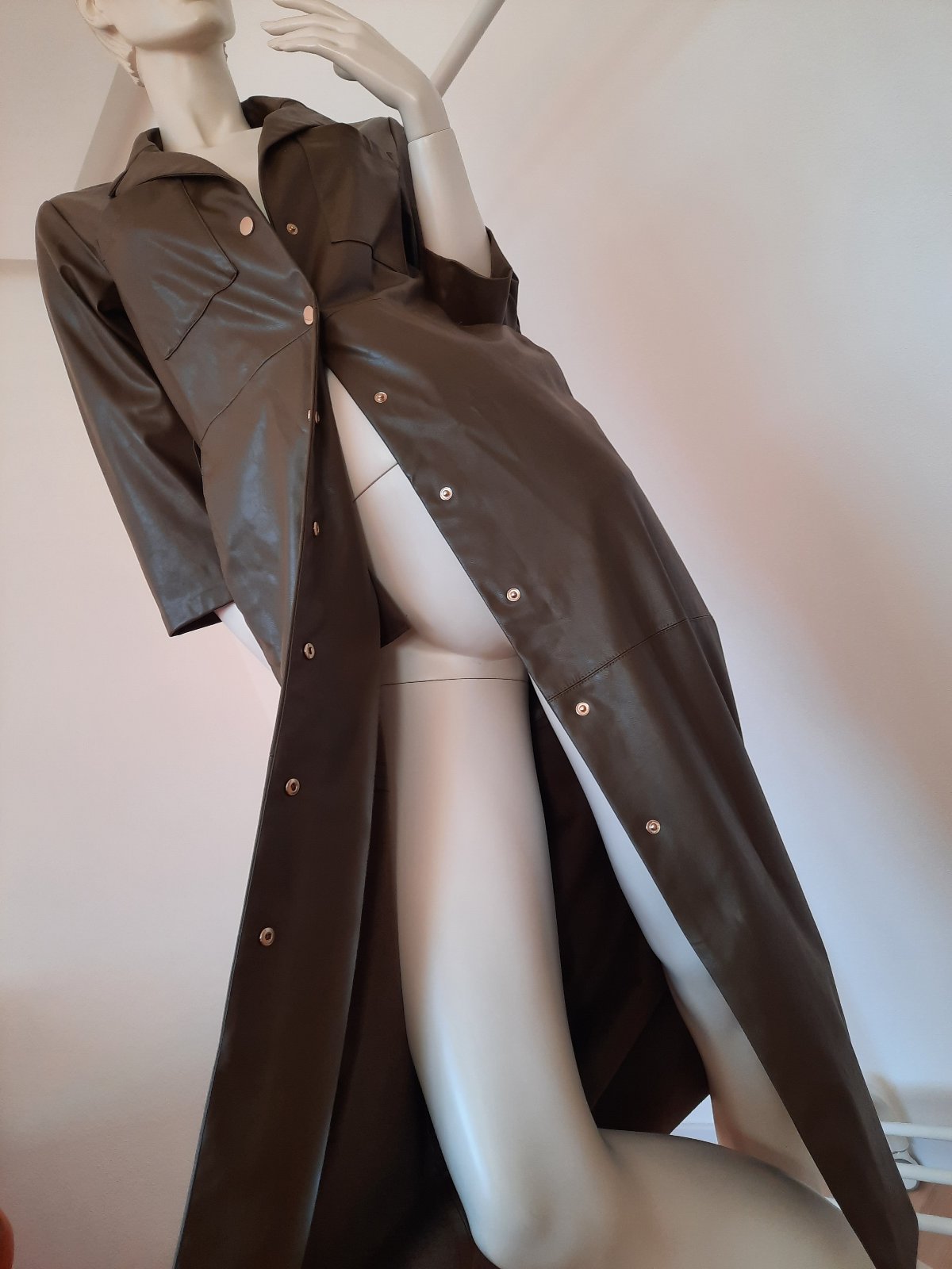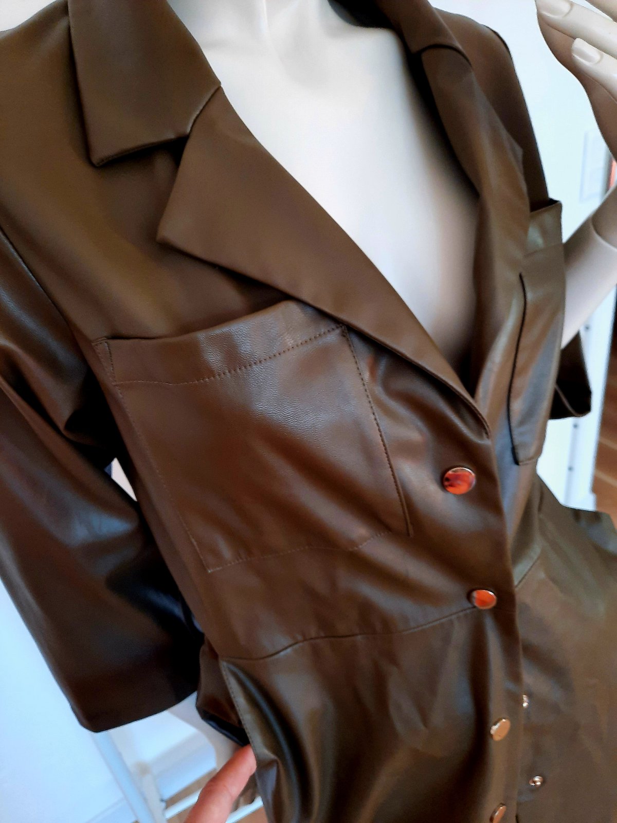 nosene malicko, pekne, v pase opasok, dva bocne vrecka viskoza, vel. M ale sedia na Sko rozmery sirka prsia 43 cm dlzka 129 cm rukav od krku 54 cm