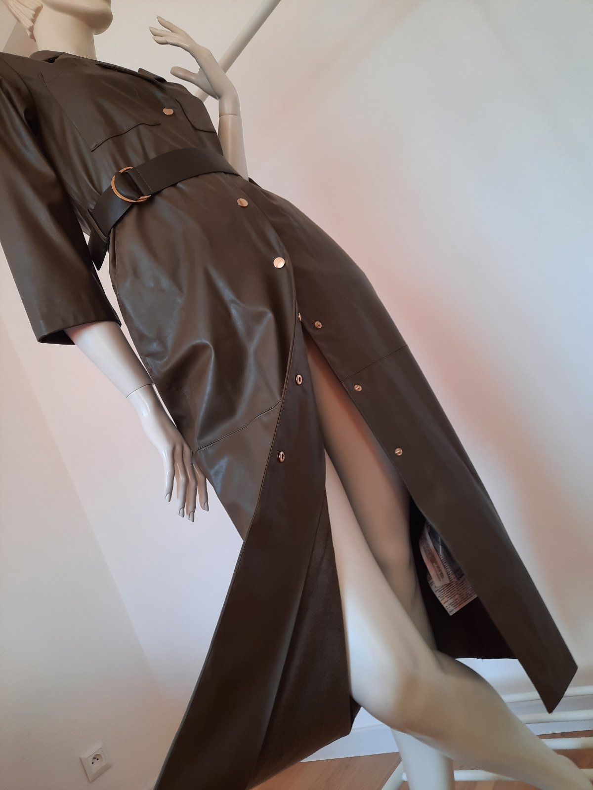 TOP!!! Zara koženkove saty..nove s visackou, farba olivovo zelena, na bokoch vrecka + opasok... vel S
