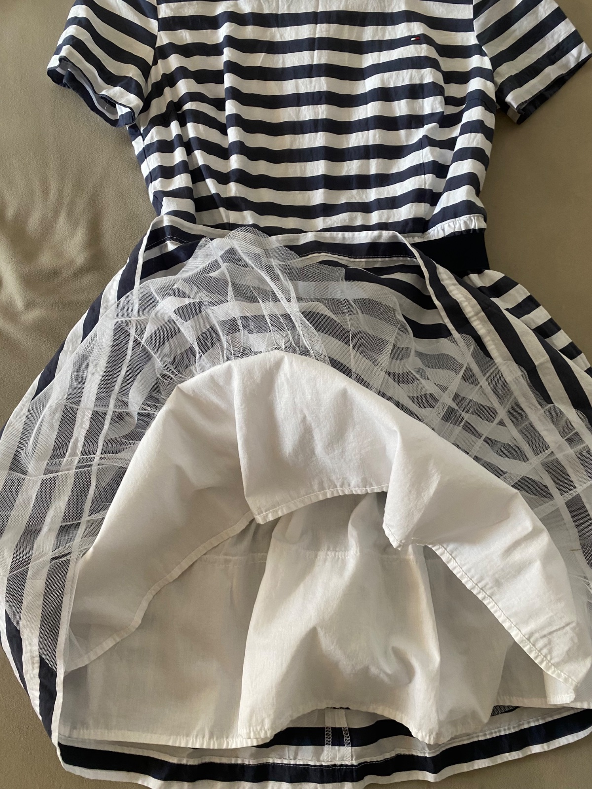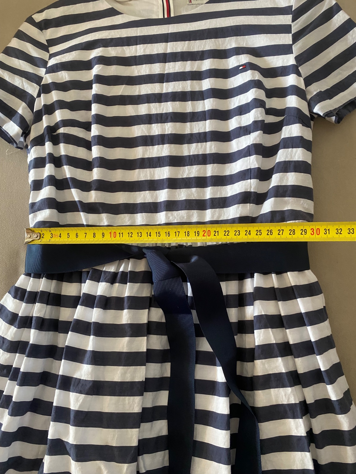 Predávam šaty, kúpené v Londýne. Veľkosť cca. 152, 11 rokov, záleží od postavy. V predu sú kratšie, 93 cm od rukáva, vzadu dlhšie 106 cm, v páse 33 cm. Má spodničku. Zips je pod mašľou vzadu. Mašľa...
