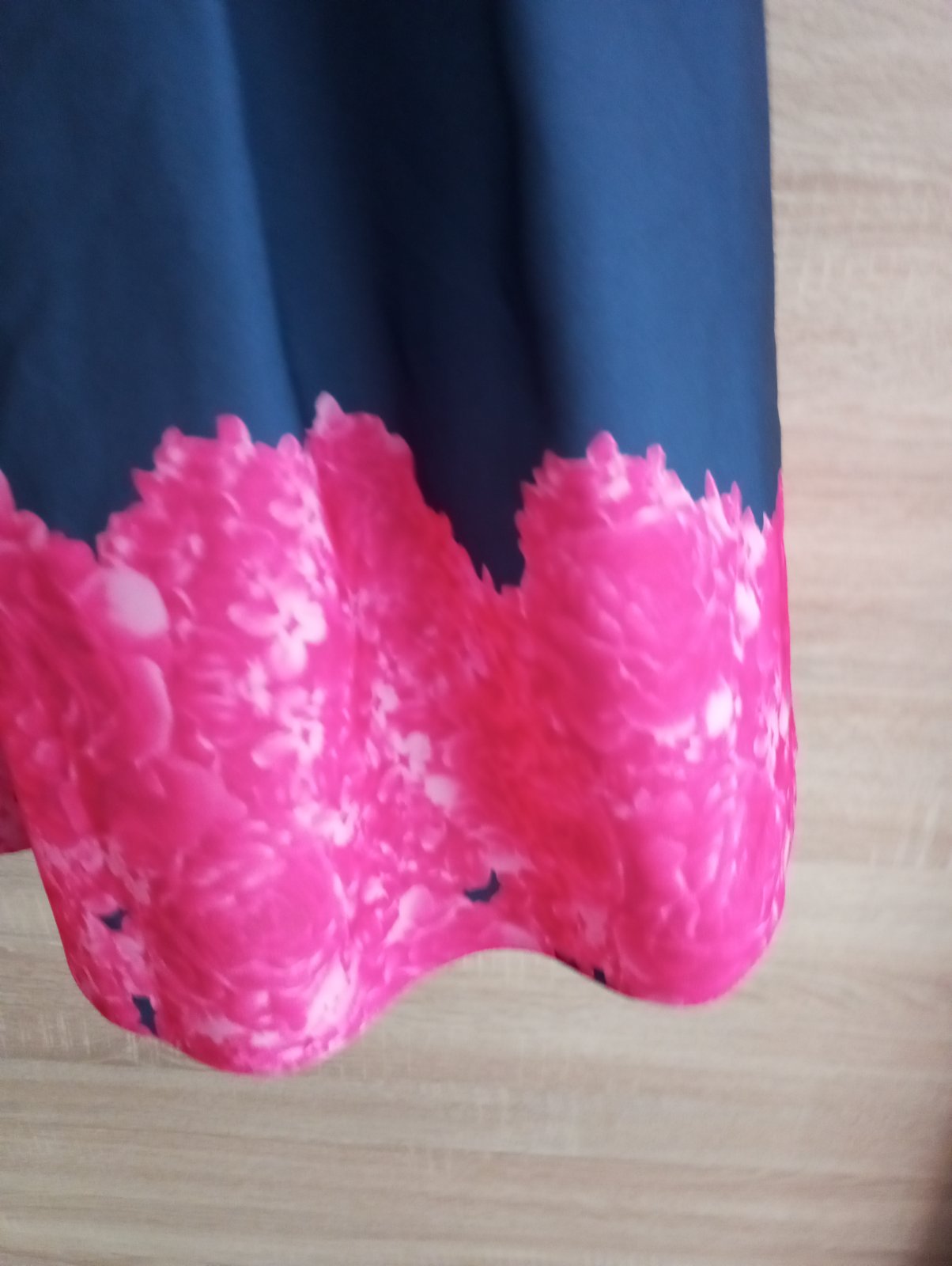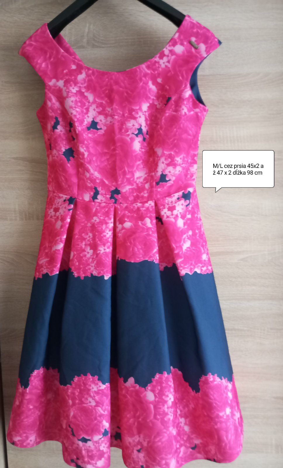 Krásne šaty s nadýchanou suknickou farba tmavomodrá s ružovou v zadu na zips.top stav