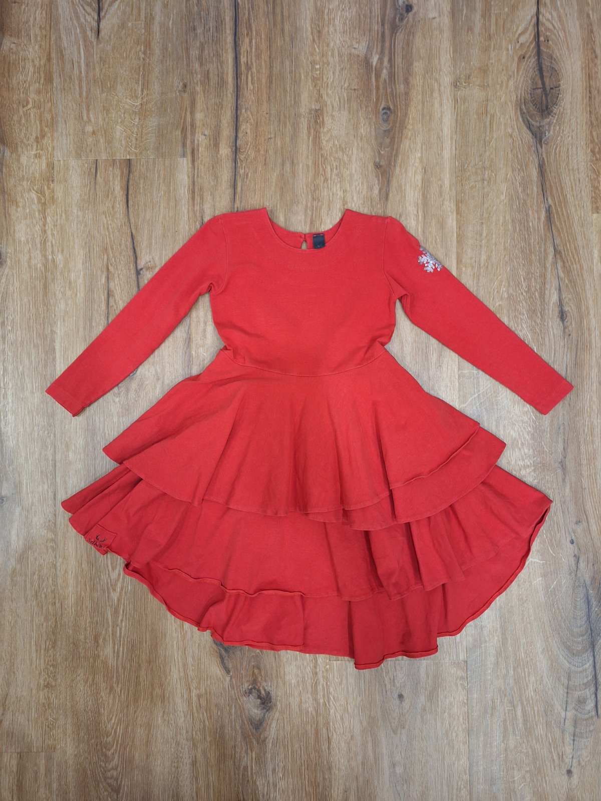 Uzasne, naše veľmi obľúbené satocky (skoda, že už pre dcerku kratšie). Cervene, pevnejší nie tenký materiál, s malinkými bielymi bodeckami. Zn. Mirau👌