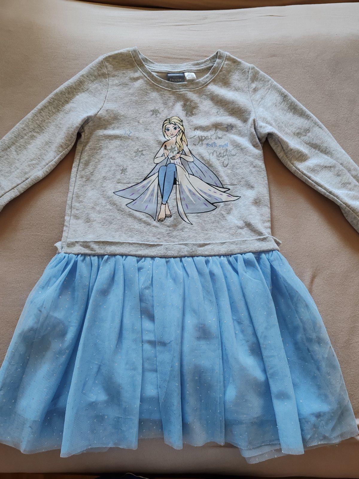 Krásne teplé šaty s tylovou sukňou, zn. Lupilu, veľkosť 110/116, ale sedia do 122. Potlač a tyl bez poškodenia, top stav.