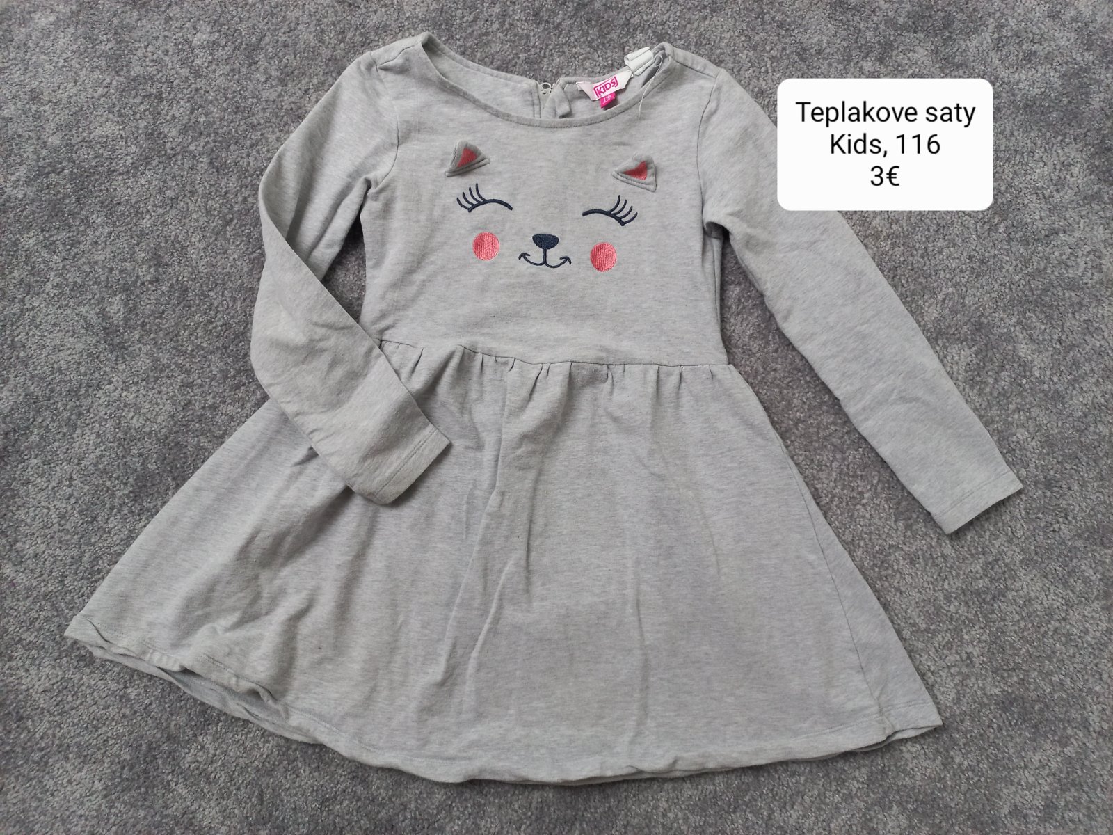 Predam teplakove saty, bez poskodenia, malicko jemne zmolky z prania. Znacka KIDS, velkost 116.