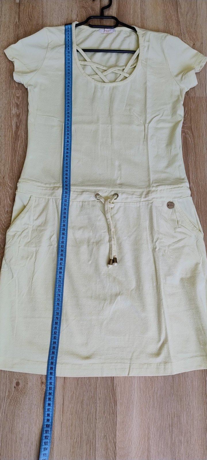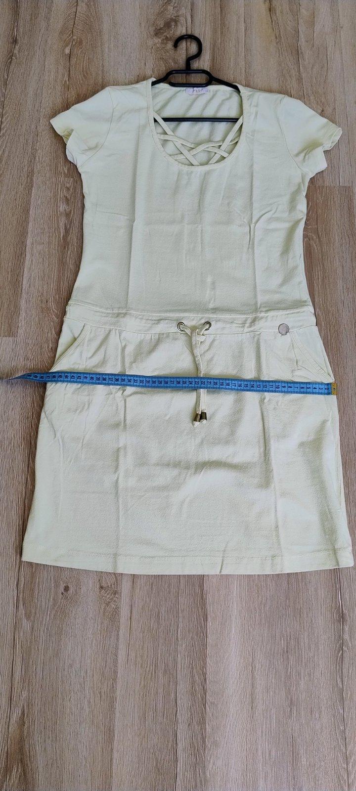 Predám športové,trickové šaty. Vel. píše L/Xl no ja dávam M. Rozmery na foto,trošku ešte povolia. Pekná pastelová žltá farba. Kúpené z riadneho obchodu.