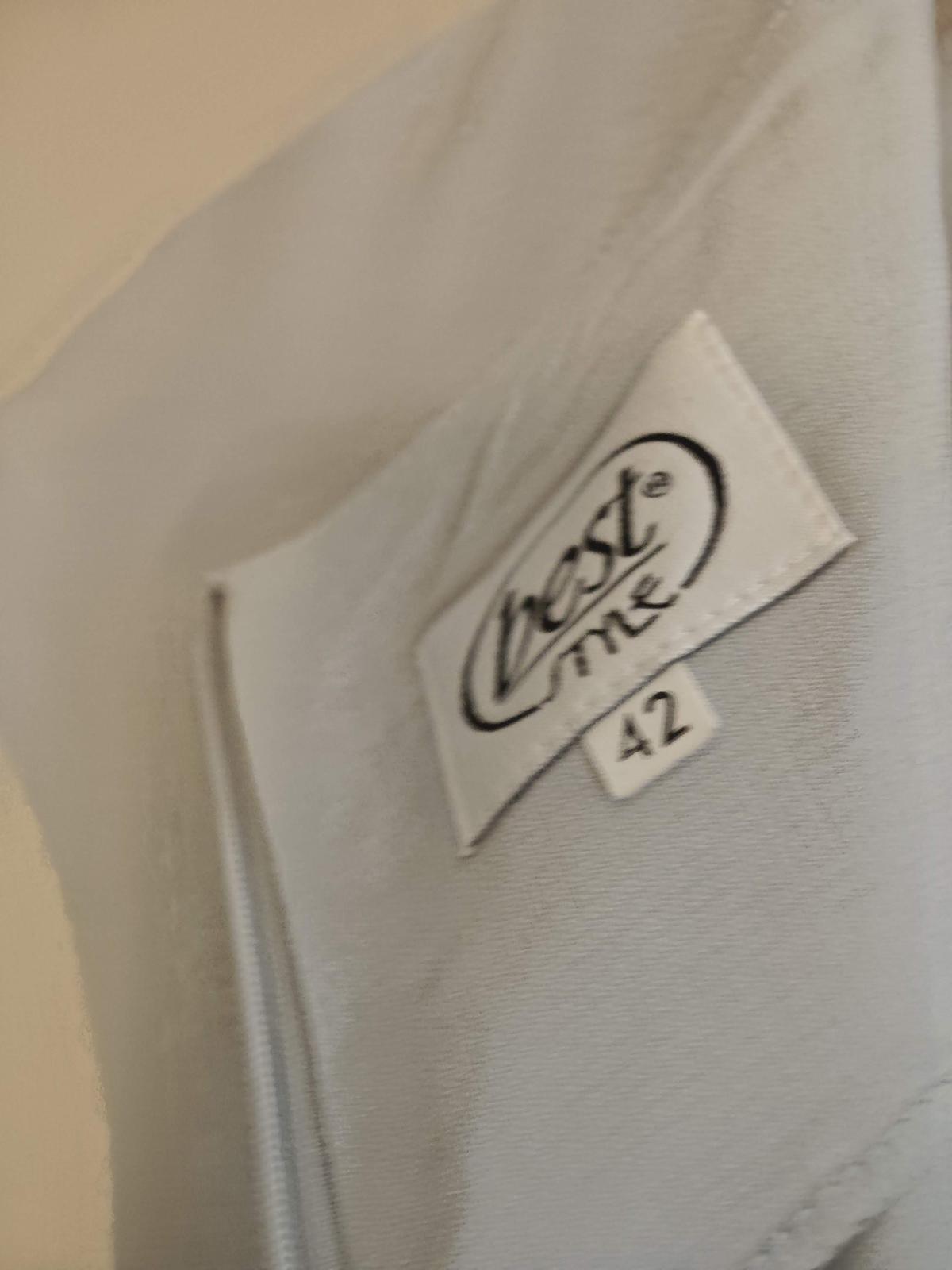 Jemné šedomodré elegantné šaty Best Me, sú podšité, super stav, ako nové. Veľkosť XL/42, ale reálne je to menšie L/40, pod pazuchami 47 cm, boky 54 cm, dĺžka 130 cm. Pozri ďalšie ponuky, viac kusov zľava 5-25%. Po zaplatení ceny a poštovného na účet posielam aj poštou.