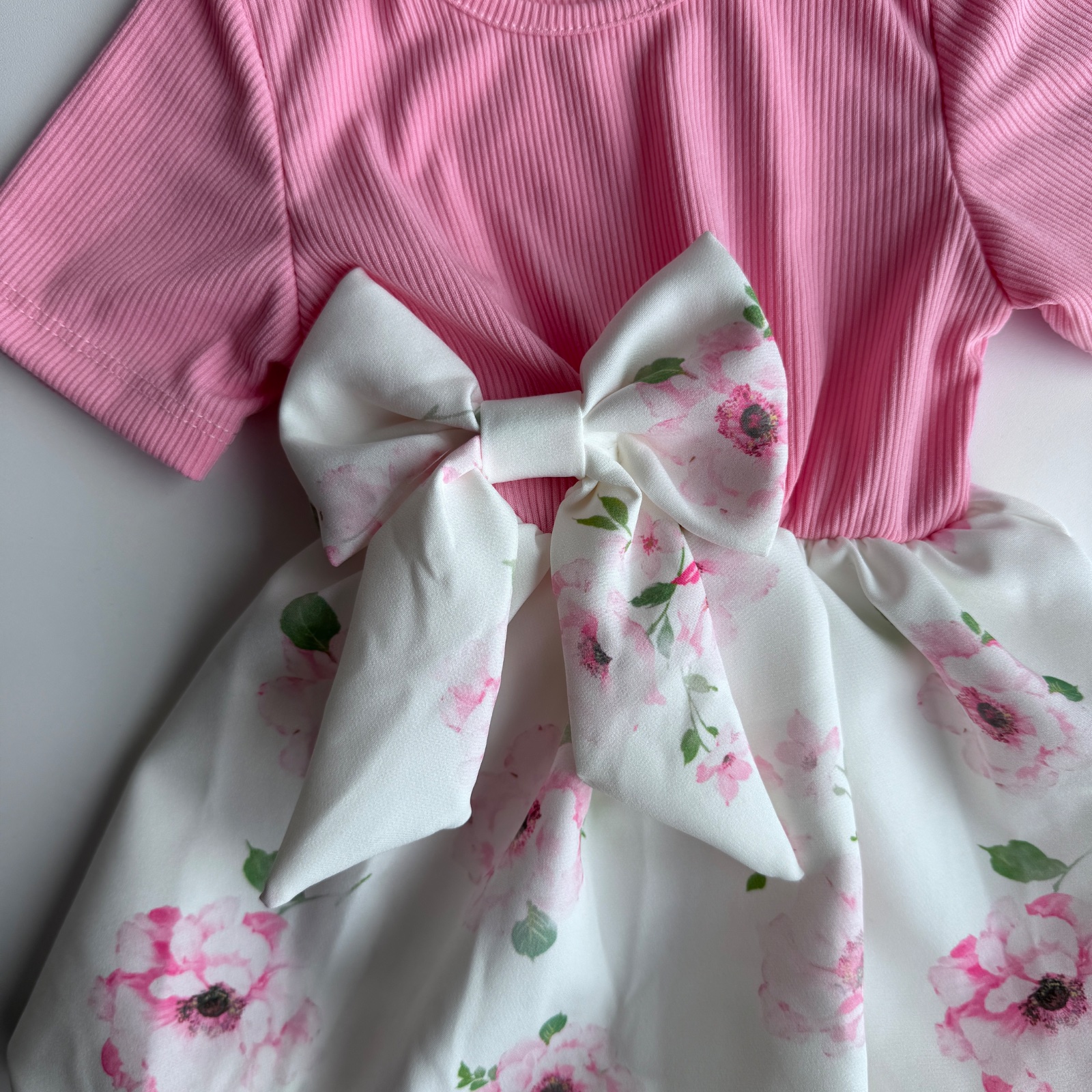 Bežné Krátky rukáv ľahké / letné Pre dievčatá 86 92 98 104 110 116 122 128 134 140 146 Midi Iná značka Biela Bledoružová Sýto ružová