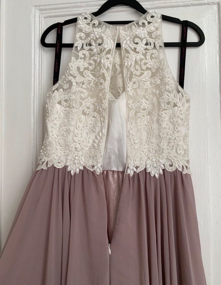 Spoločenské šaty na výšku 165 cm, 1x oblečené, sadnu na veľkosť XS/S, značky Asos. Na šatách z vnútornej strany je par žmoliek (je to vidno na poslednej foto) - mala som pri tom kamienkové topánky ...