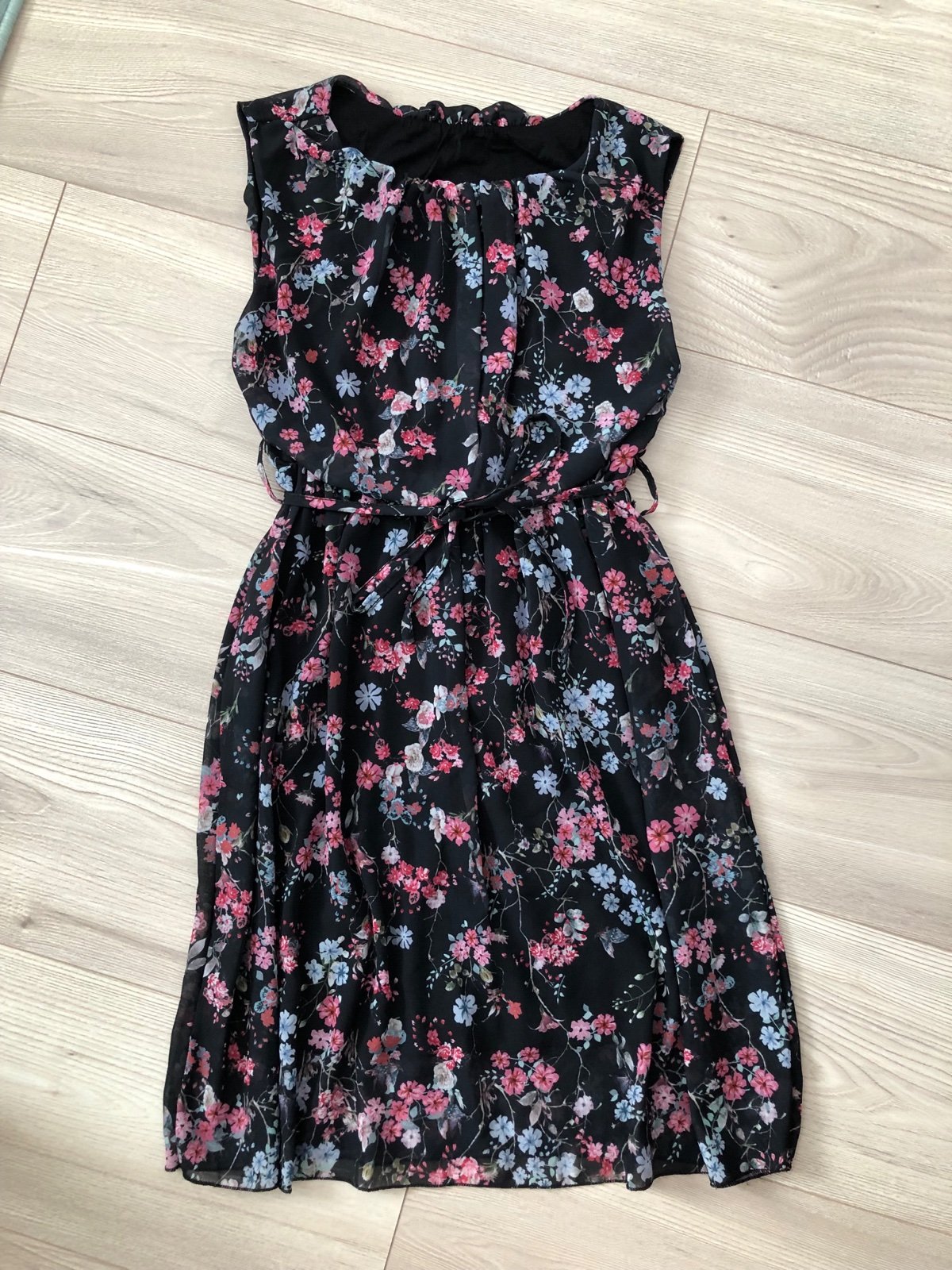Krásne letné šaty, TOP STAV. Ľahký materiál, v páse je gumička a tiež tenký opasok na previazanie. Sú podšité čiernou elastickou látkou do pol stehien.