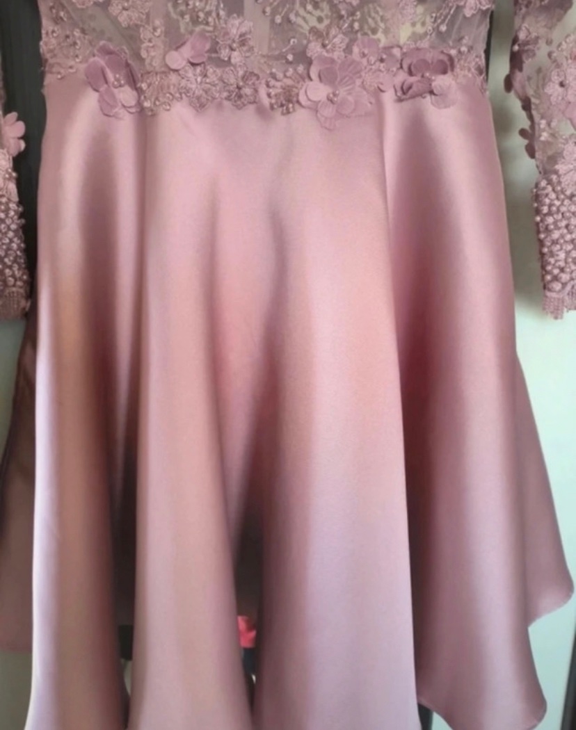 2x oblečené, rozmery - pás 75cm, hrudník 90cm, dĺžka 93cm. Šaty boli povodne dlhé, sú skracované. PC dlhých šiat 200€.
