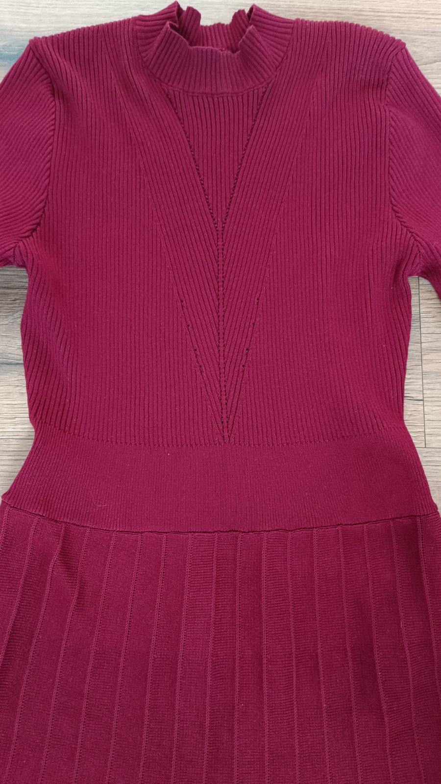 Úpletové šaty Maxi veľ,S,M. Kvalitný pevný úplet. Foto skresľuje aké sytá pekná bordová farba šiat . Málo nosené, bez známok poškodenia . Rozmerovo sa prispôsobí postave .