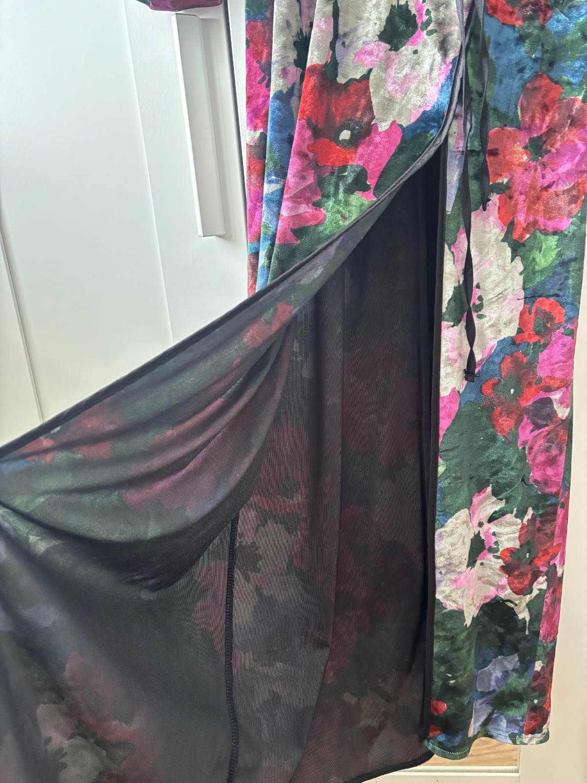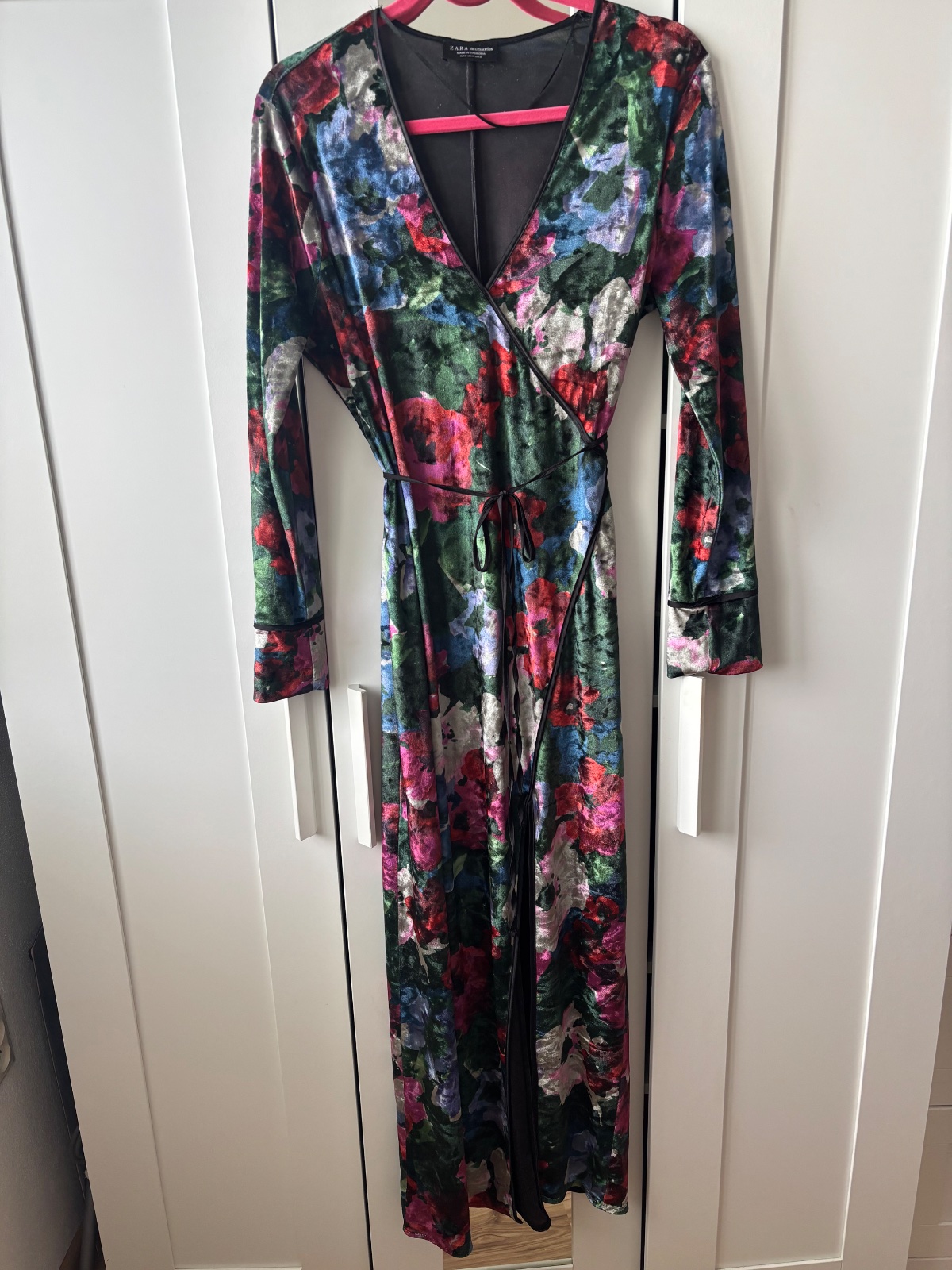 Nosené šaty, ale vo veľmi dobrom stave. Kúpene ako kimono zavinovacie šaty. Upravené krajčírkou, aby sa pri nosení neotvárali a držali tvar.