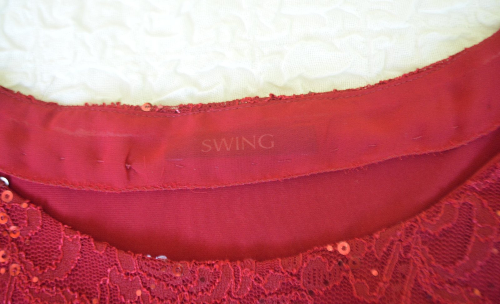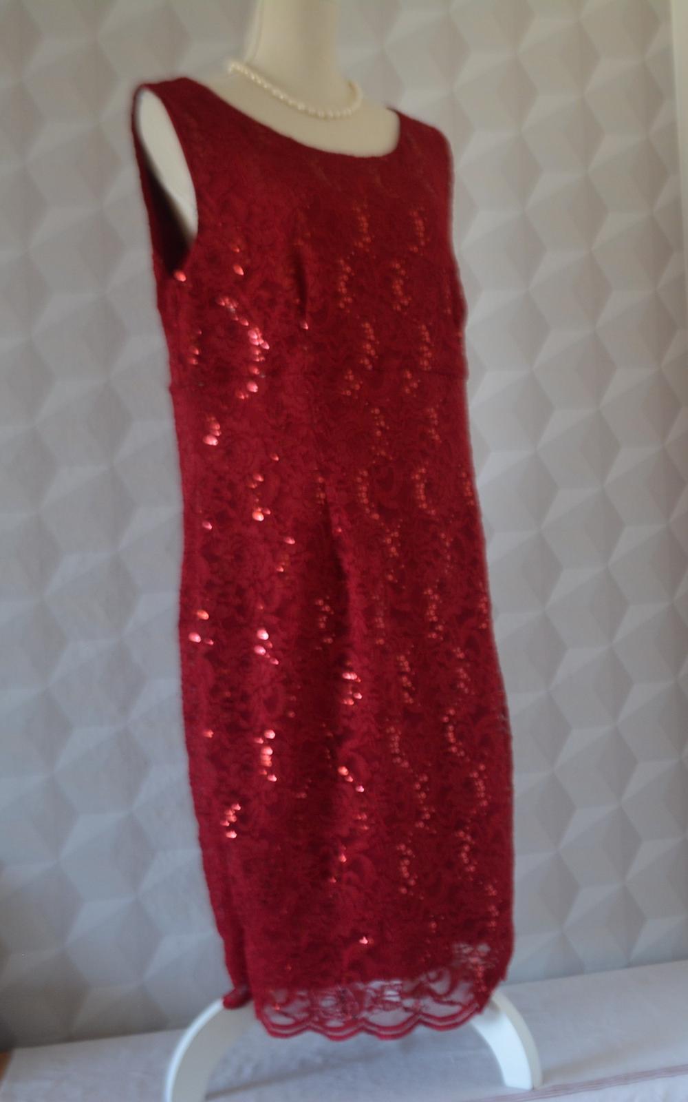 Dámske elegantné šaty, čipka s flitrami, značka SWING, veľ. XXL - rozmery: dĺžka 102cm, pod pazuchami 2x56cm, pás 2x50cm, boky 2x63cm.