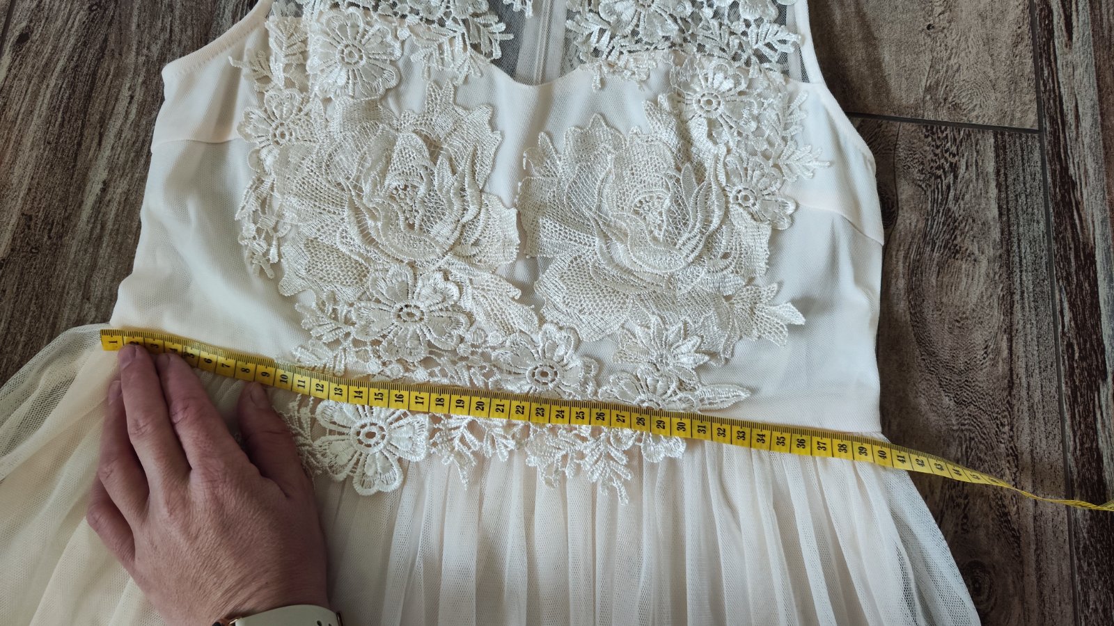 Predám spoločenské šaty raz oblečené. Veľkosť presne neviem, približne 42. Na foto sú rozmery.