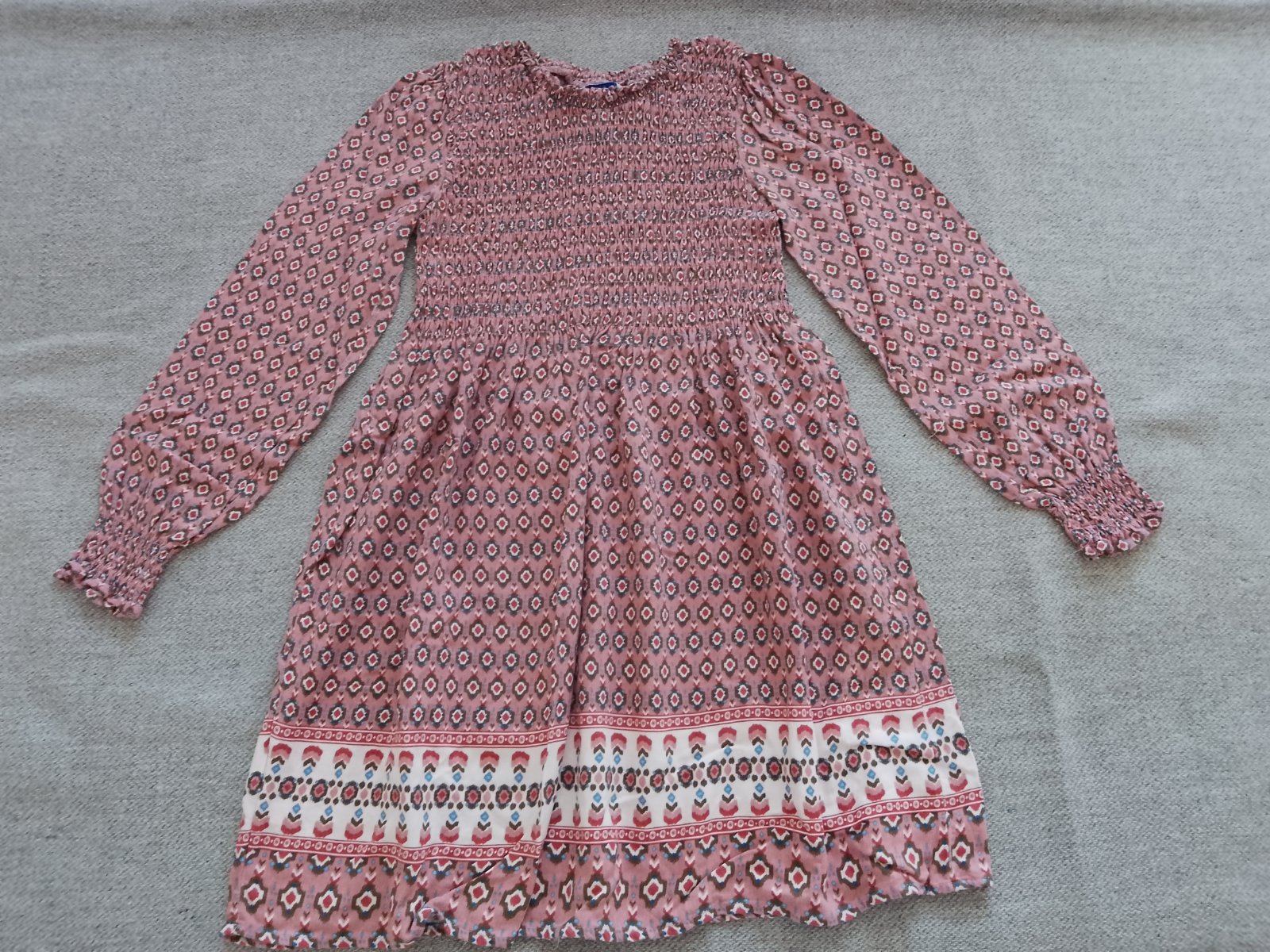 Dievčenské šaty v super stave. Oblečené boli pár krát. Bez poškodenia, dier a fľakov. Rozmery - viď foto. Materiál je veľmi príjemný - šaty sú ideálne na prechodné obdobie.