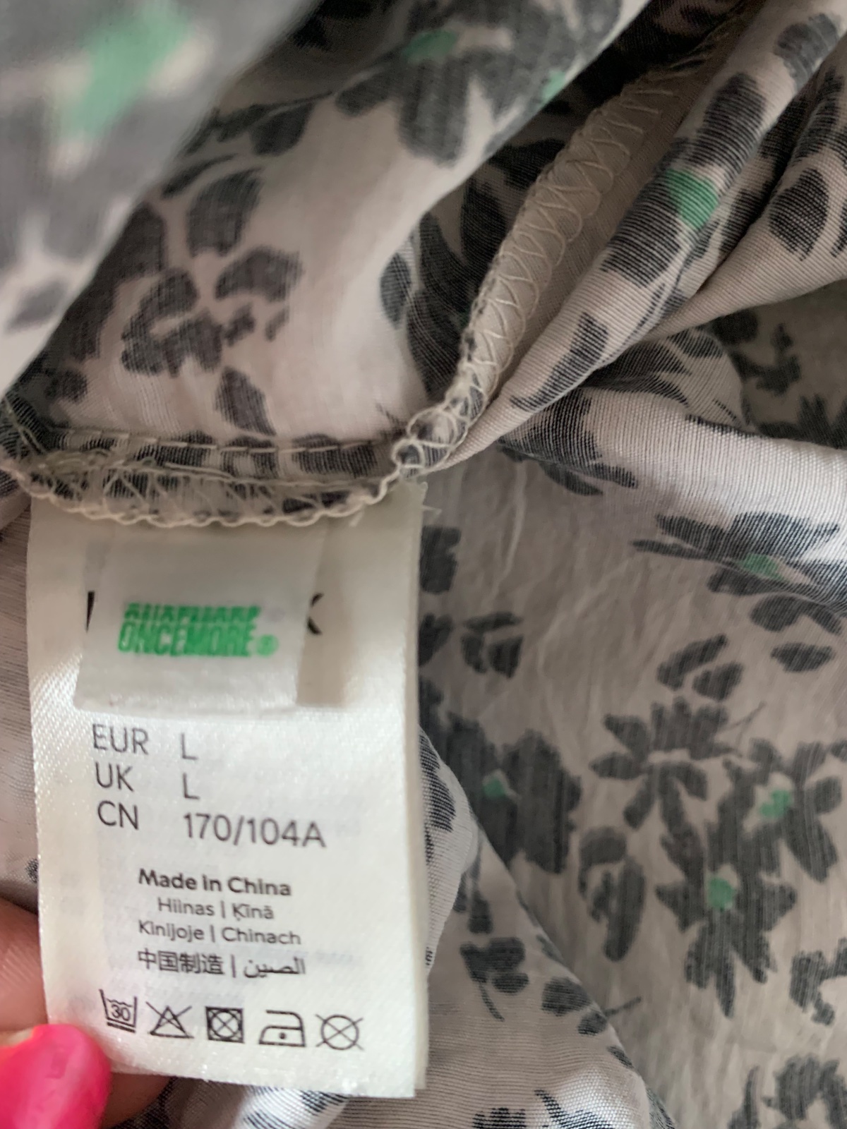 Hlavný materiál v tomto produkte obsahuje minimálne 50 % OnceMore® viskózy. OnceMore® od spoločnosti Södra je surovina na výrobu viskózových vlákien, v ktorej sa recyklovaný textil kombinuje s drevom zo švédskych lesov.