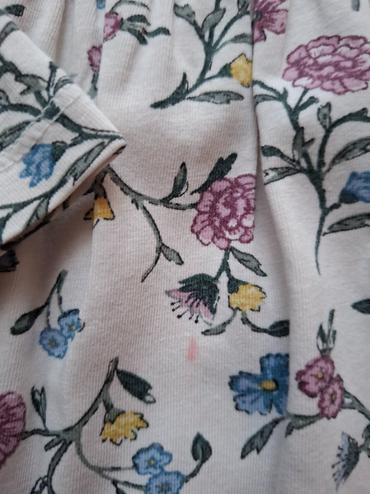 Pohodlné šaty z mäkkého bavlneného úpletu so vzorom baby leopard. Obliekanie cez hlavu, dlhý rukáv, bez poškodení, bez známok použitia. 100% bavlna, pranie v pračke 40°C. dĺžka 65 cm šírka ramená 2...