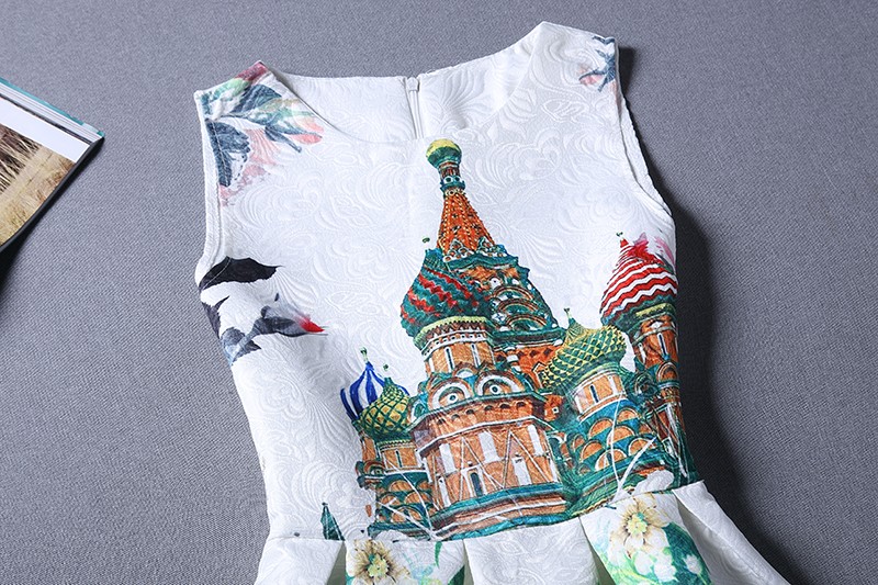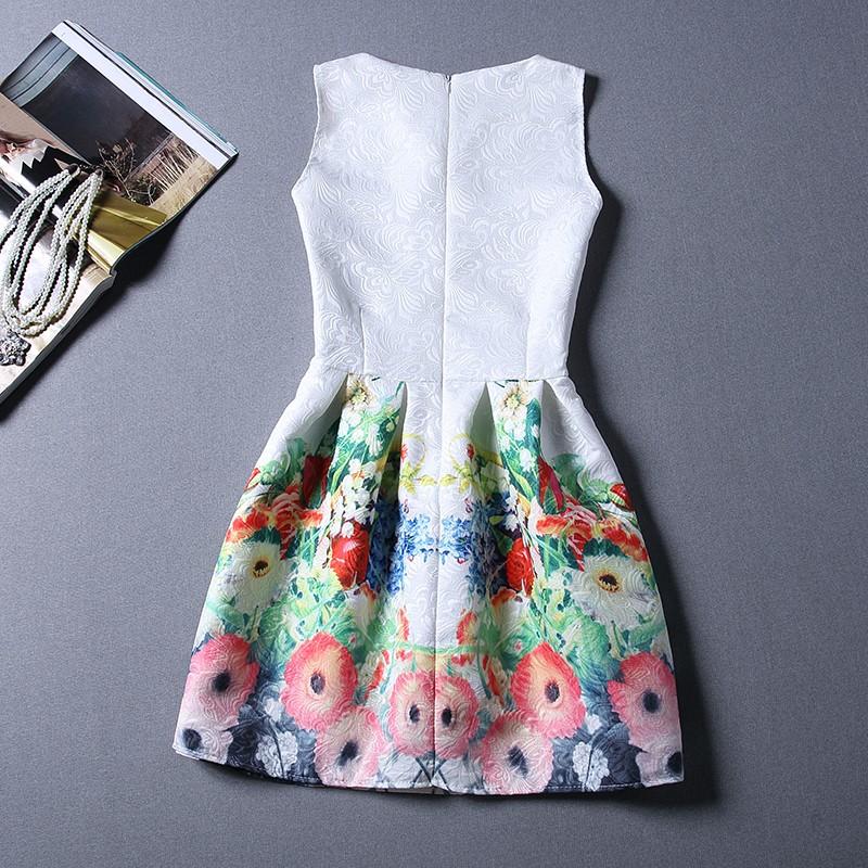 Nadherne elegantne saty bez rukavikov v krasnej bielej farbe s romantickou farebnou potlacou na jemne vzorovanom vtlacanom podklade,uzasne ako na bezne nosenie tak aj na spolocensku prilezitost.