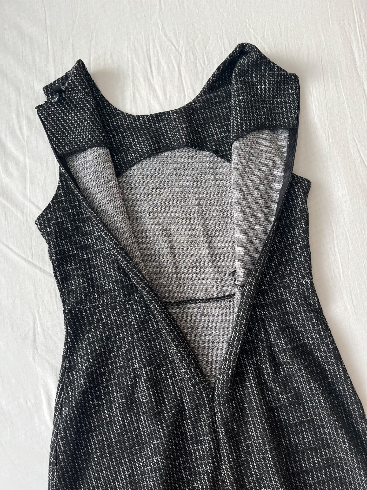 Top stav...elastické, mäkkučký materiál...63% polyester, 35% viskoza, 2% elastan...d 86 cm, š 47 cm... čierno-strieborný vzor....