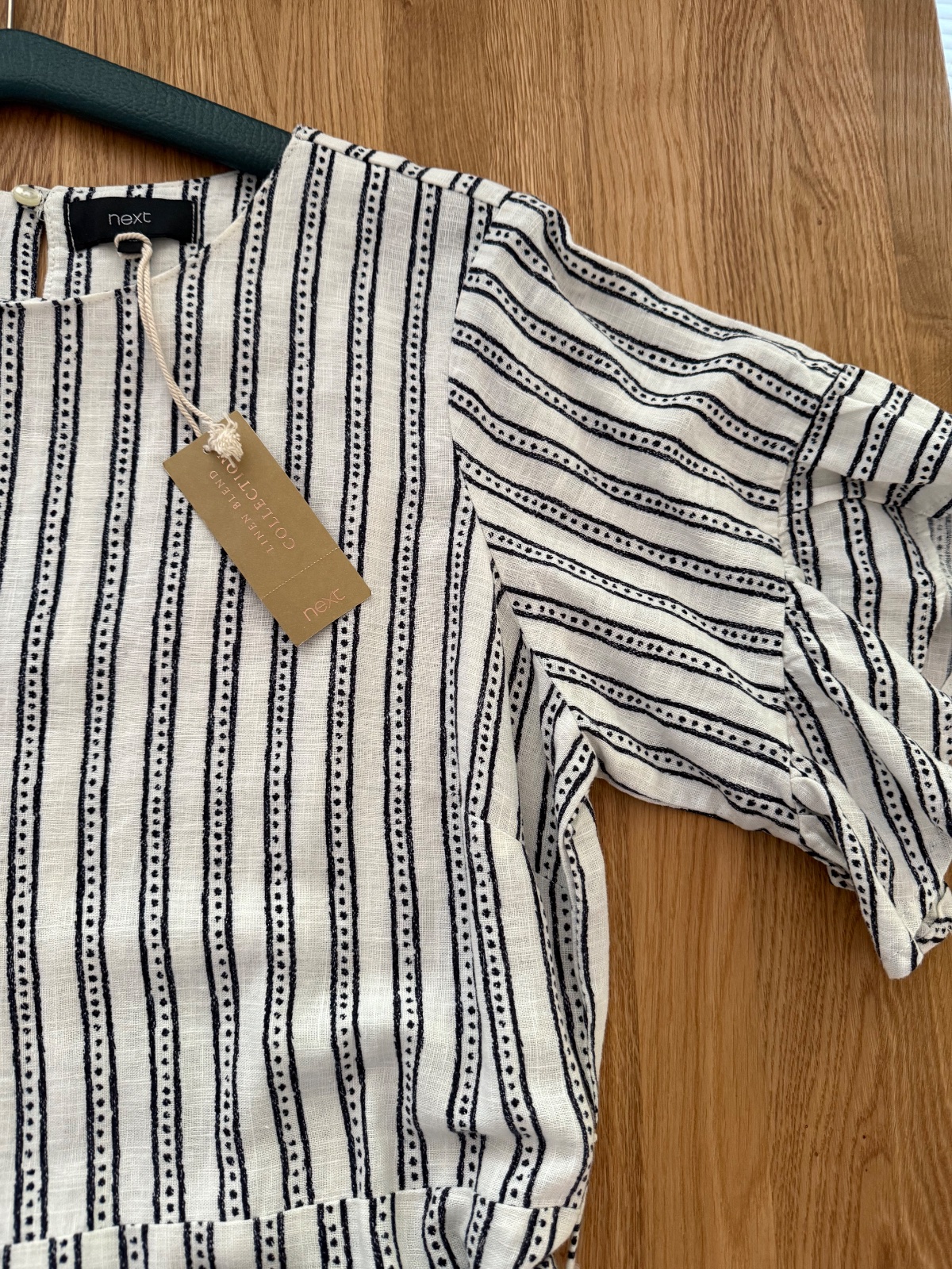 Nove saty zn. Next s visackou. Vyborny material: 55% lan, 45% ecover viskoza. Super prijemne, neskriabu. Idealne na jar a leto.