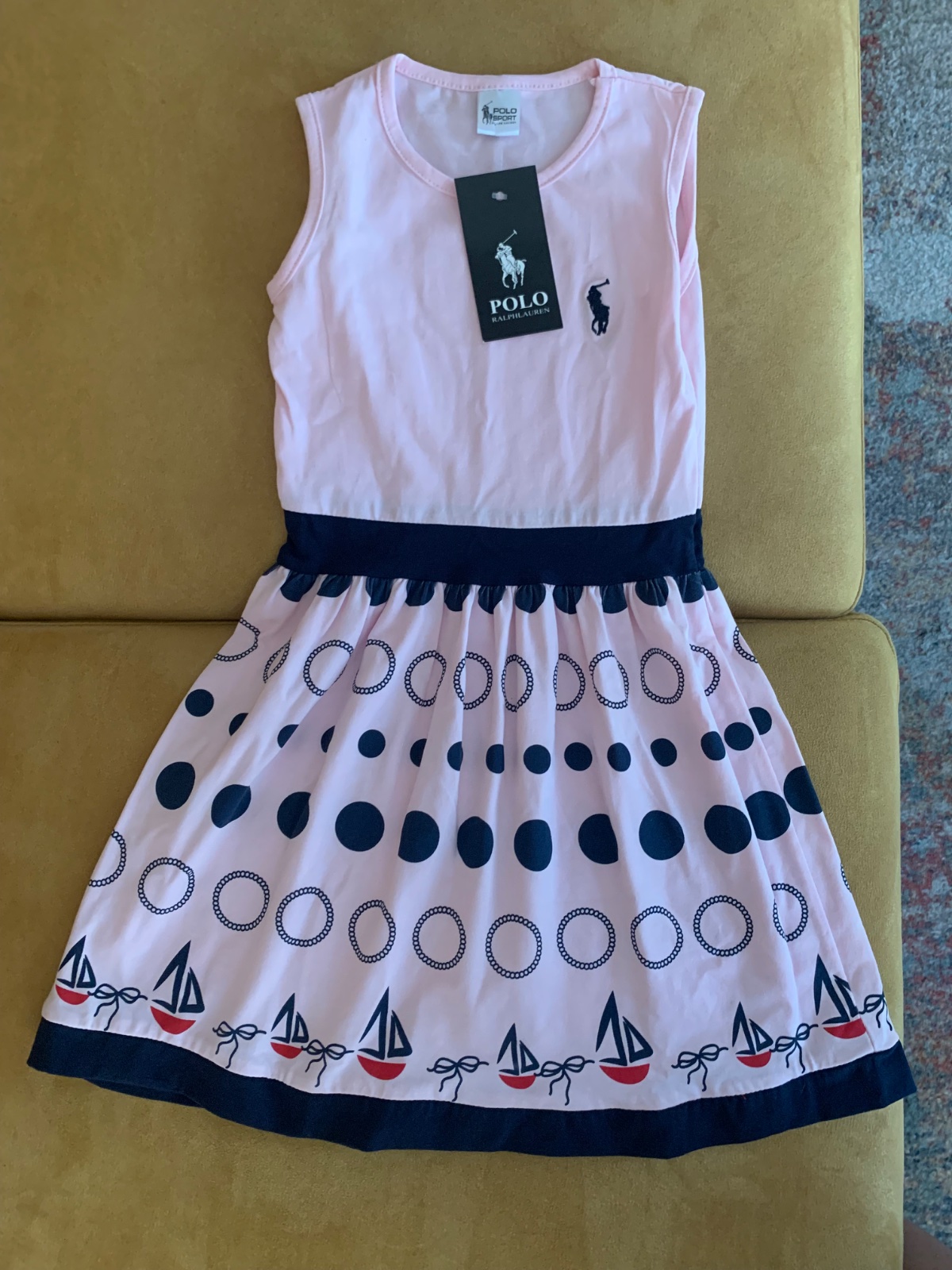 Letne saty, nemyslim vsak, ze ide o original Ralph Lauren. Kazdopadne, material prijemny, no nevhodny darcek (male). Farba na 1.fotke skreslena, blizsie reality je ta na 2.fotke. Uvedena velkost 134-140, realne skor 128-134. Osobny odber mozny v BA.