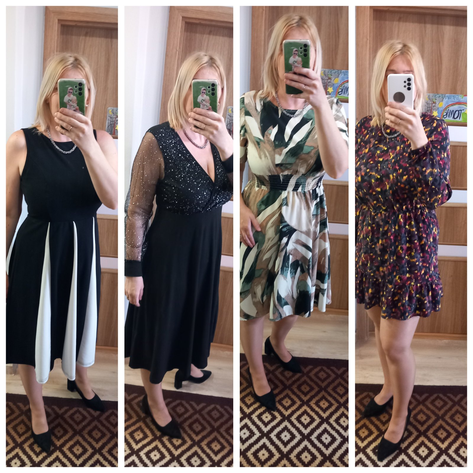 Šaty su veľkosť L. Všetky čierne saty boli raz oblečené, tie bordove /farebne sinsay č3. som mala viackrát. Všetko top stav bez poškodenia. Šaty su elastické . Šaty Č4.su nové len vyskúšané a preprane.