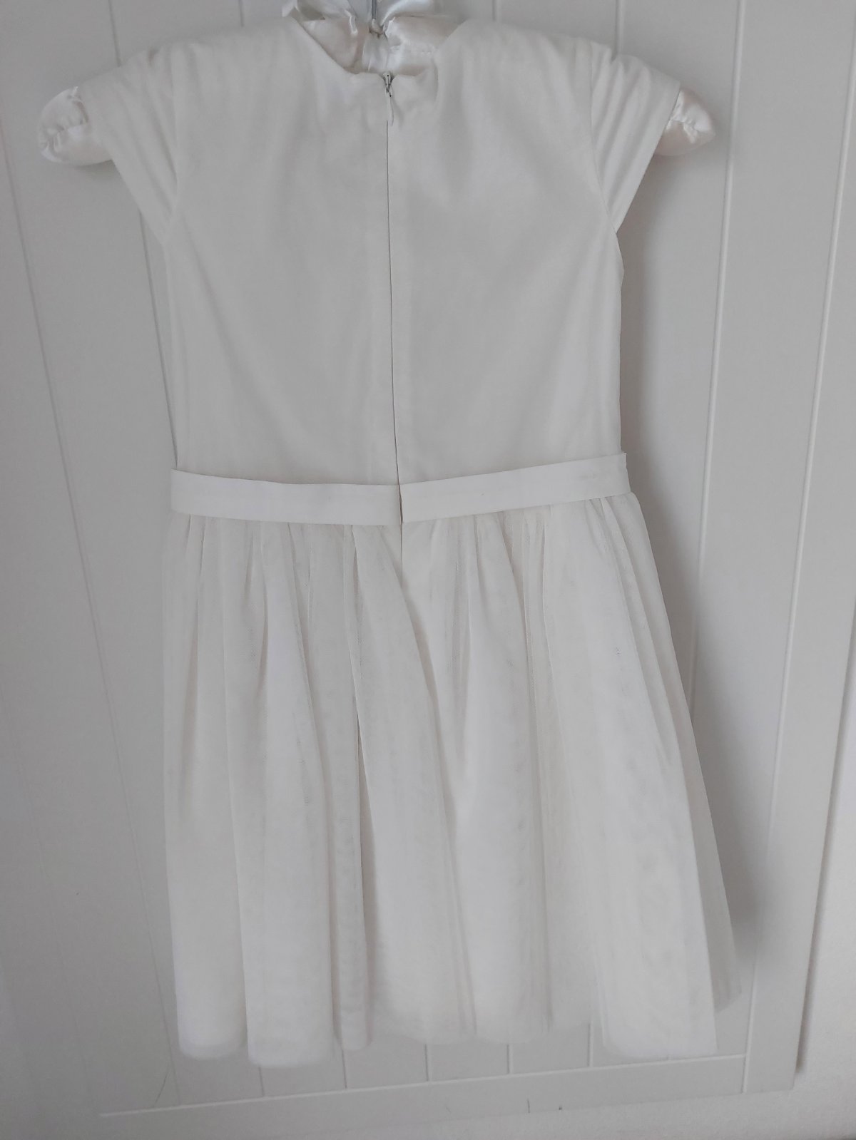 Šaty na slávnostnú príležitosť,s tylovou sukňou,ešte dve spodničky pod tylom.Zdobené zlatými kvetmi a vpredu je pásik s kamienkami.Zapínanie na chrbte