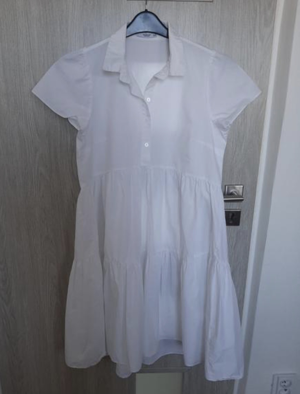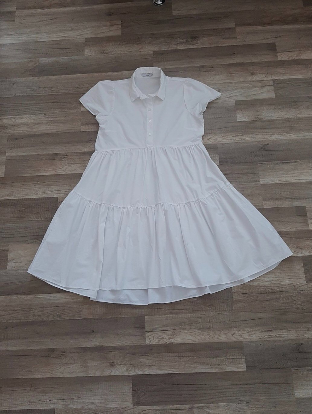 Pekne biele saty bez poskodenia , hrudnik 48, dlzka predny diel 92, zadny diel 98