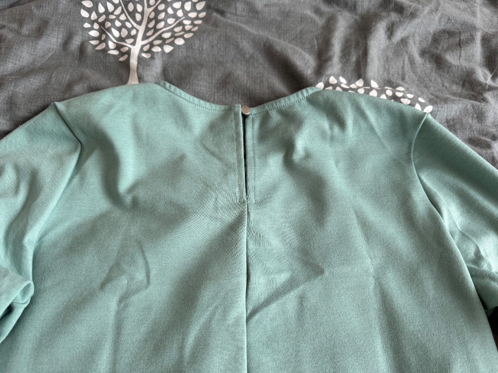 Príjemne mentolové šaty s atypickými rukávmi (predaj bez opasku) veľkosť neuvedená, ale sedí na veľkosť 38. Vzadu gombička na zapnutie