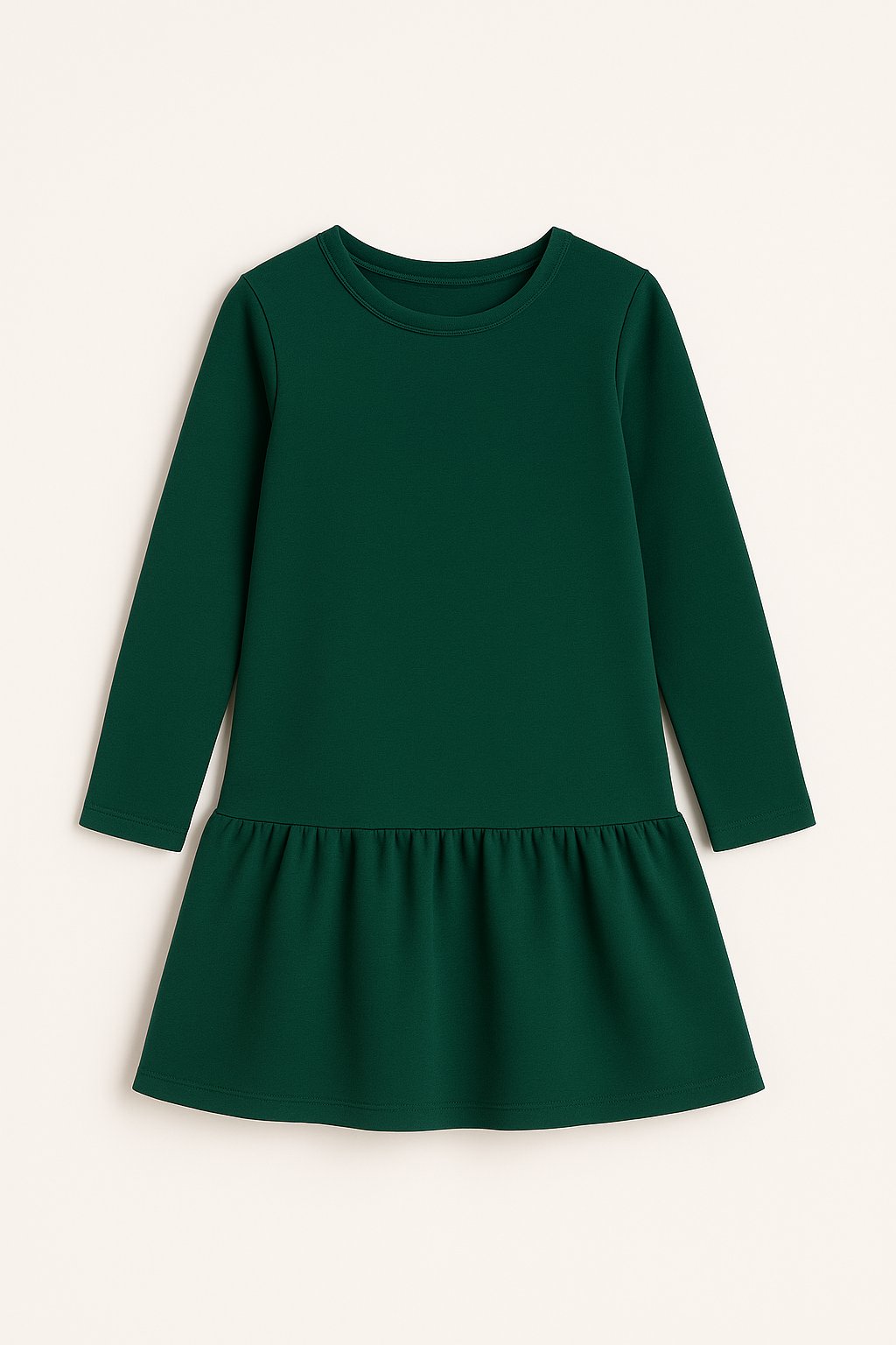 Tieto dievčenské šaty v elegantnej tmavozelenej farbe sú ideálnou voľbou na každodenné nosenie, do školy, na oslavy aj rodinné fotenia. Jednoduchý, čistý dizajn dopĺňa jeden širší spodný volán, ktorý dodáva šatám dievčenský a jemne romantický vzhľad.