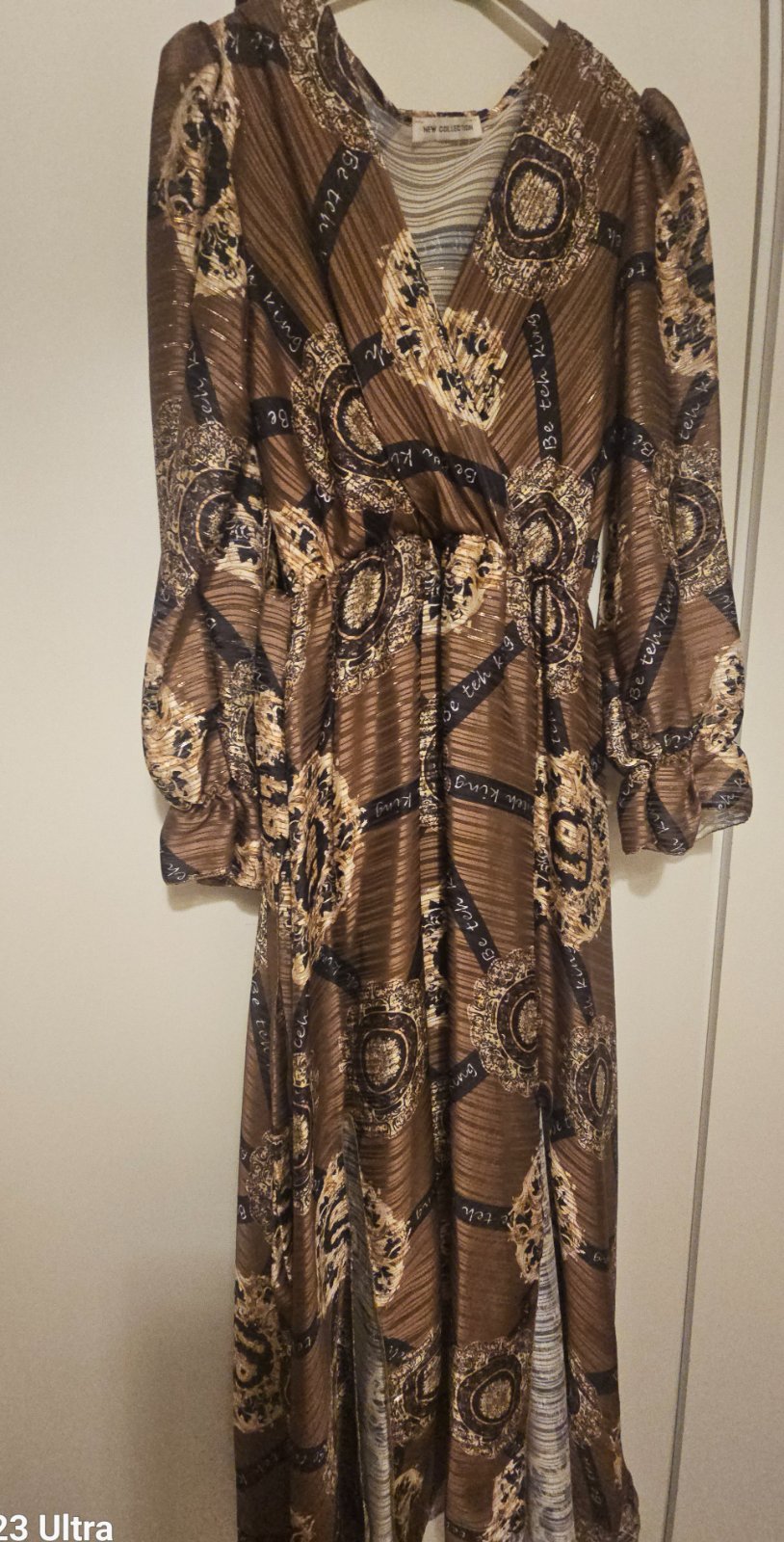 Spoločenské šaty vo veľkosti S/M Prsia: prispôsobia sa max. 89 cm Pás: 70 cm Boky: 90 cm Dĺžka od ramena: 162 cm