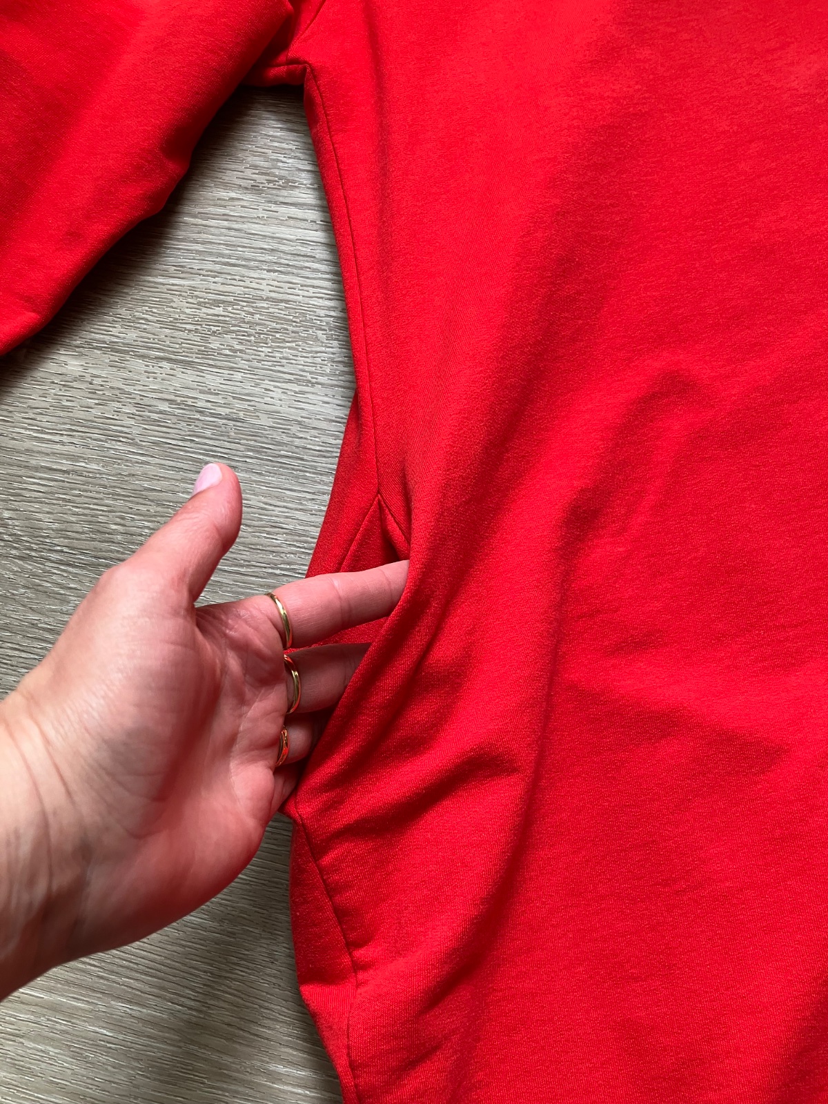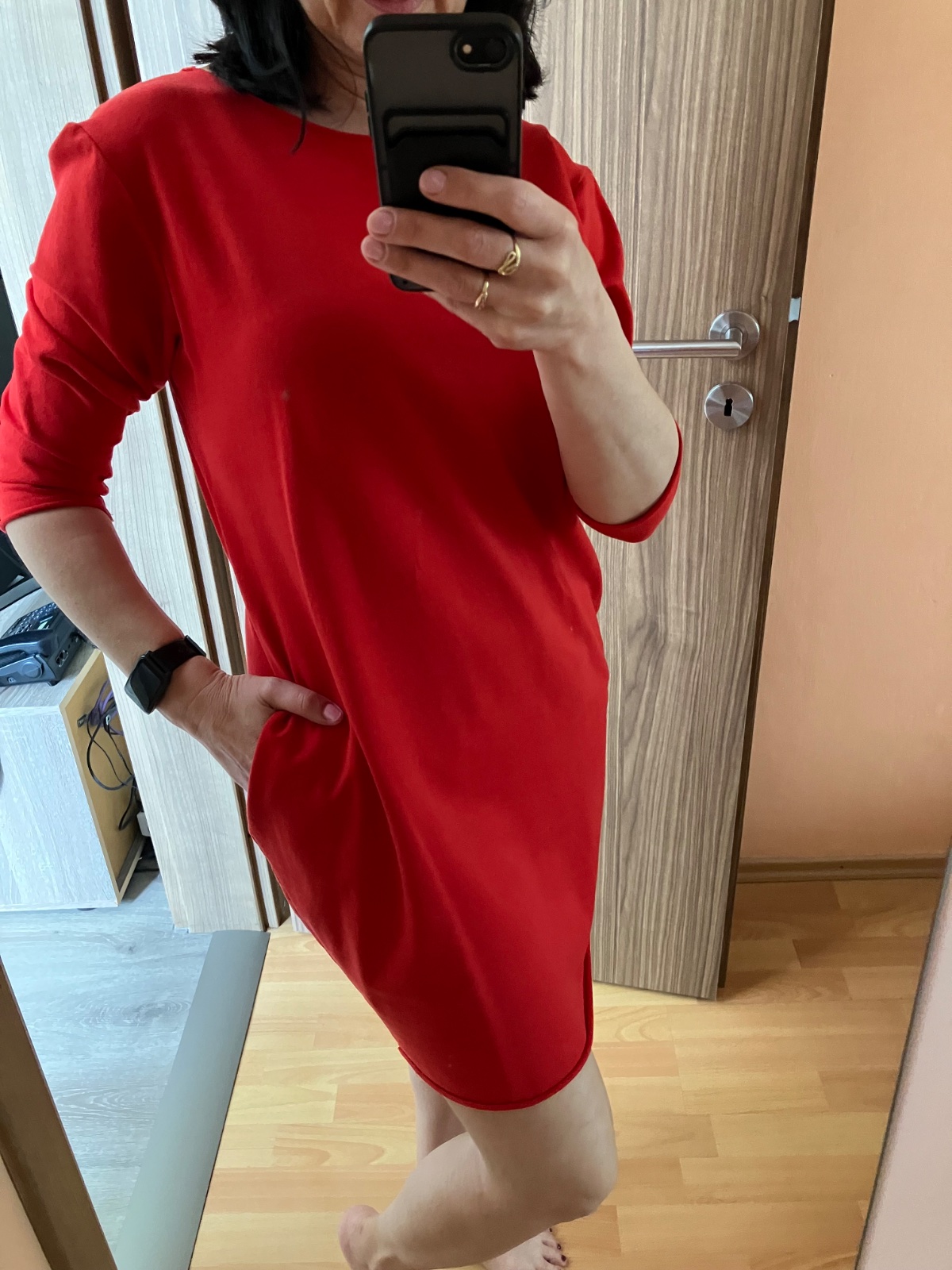 Predám krásne červene saty z trickoviny. Voľný strih s bočnými vreckami. Nosene, super stav. Veľkosť nie je písaná no ja nosím tak s/m