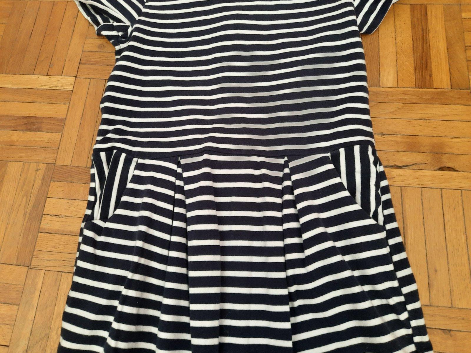 Veľmi pekné dievčenské šaty na "námornícky" štýl. Má väčší golier. Je to bavlnený, elastický úpletový materiál. Výborný stav. Váha: 186 gr. D- 72 cm ŠvPP- 36x2 cm