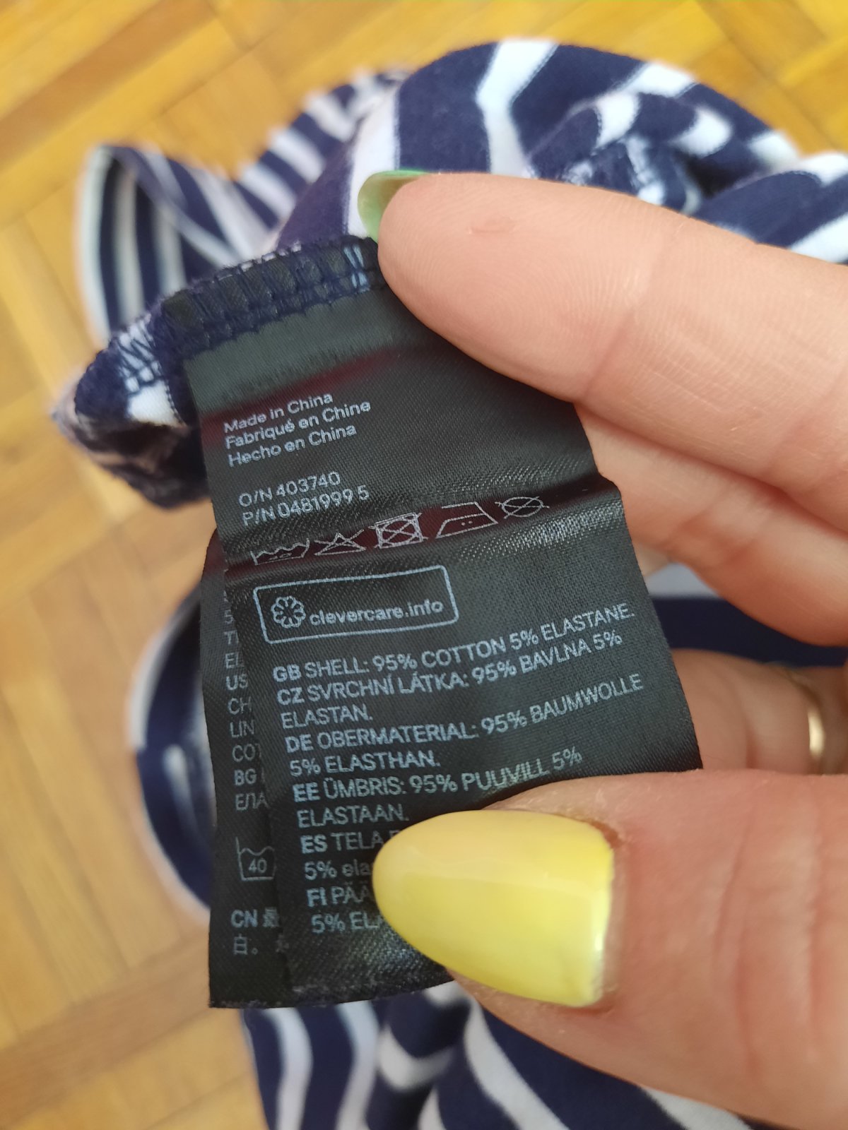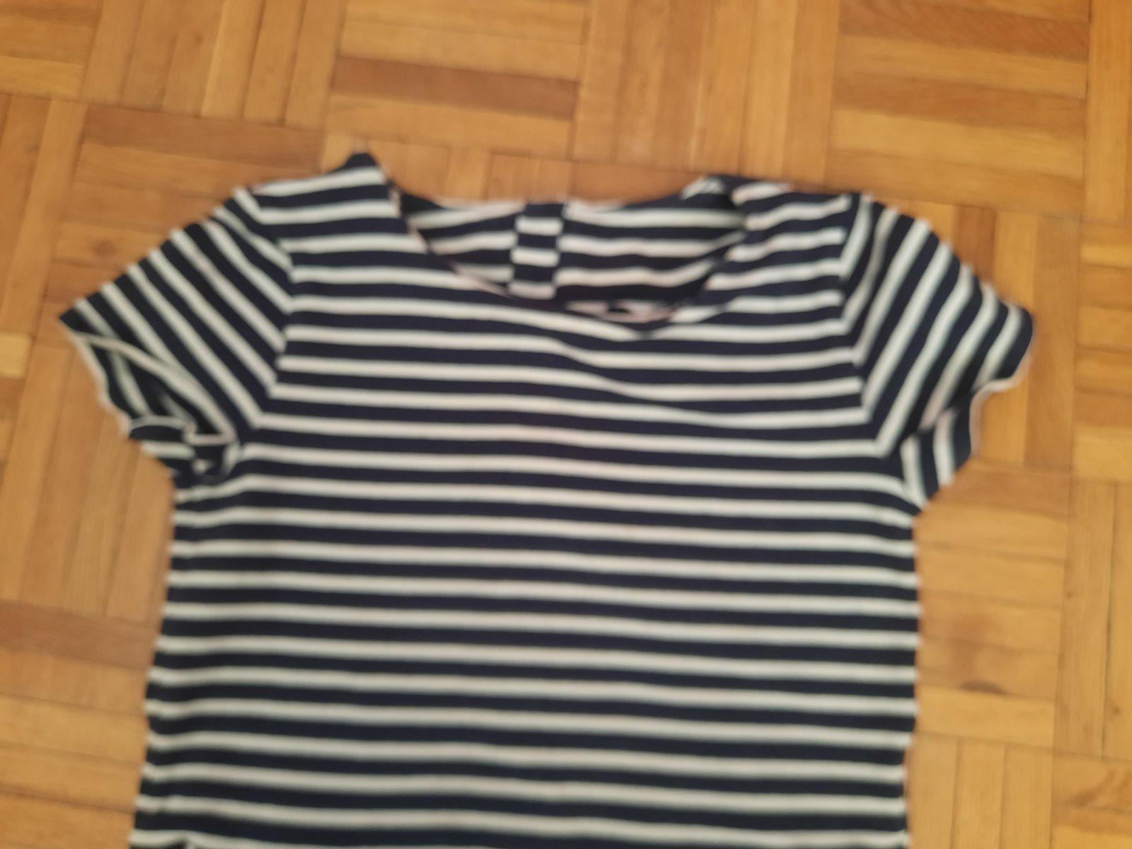 Veľmi pekné pásikavé šaty. V páse sú prestrihnuté, z boku sú vačky. Vzadu je zapínanie na zips. Super stav, elastický úpletový materiál.