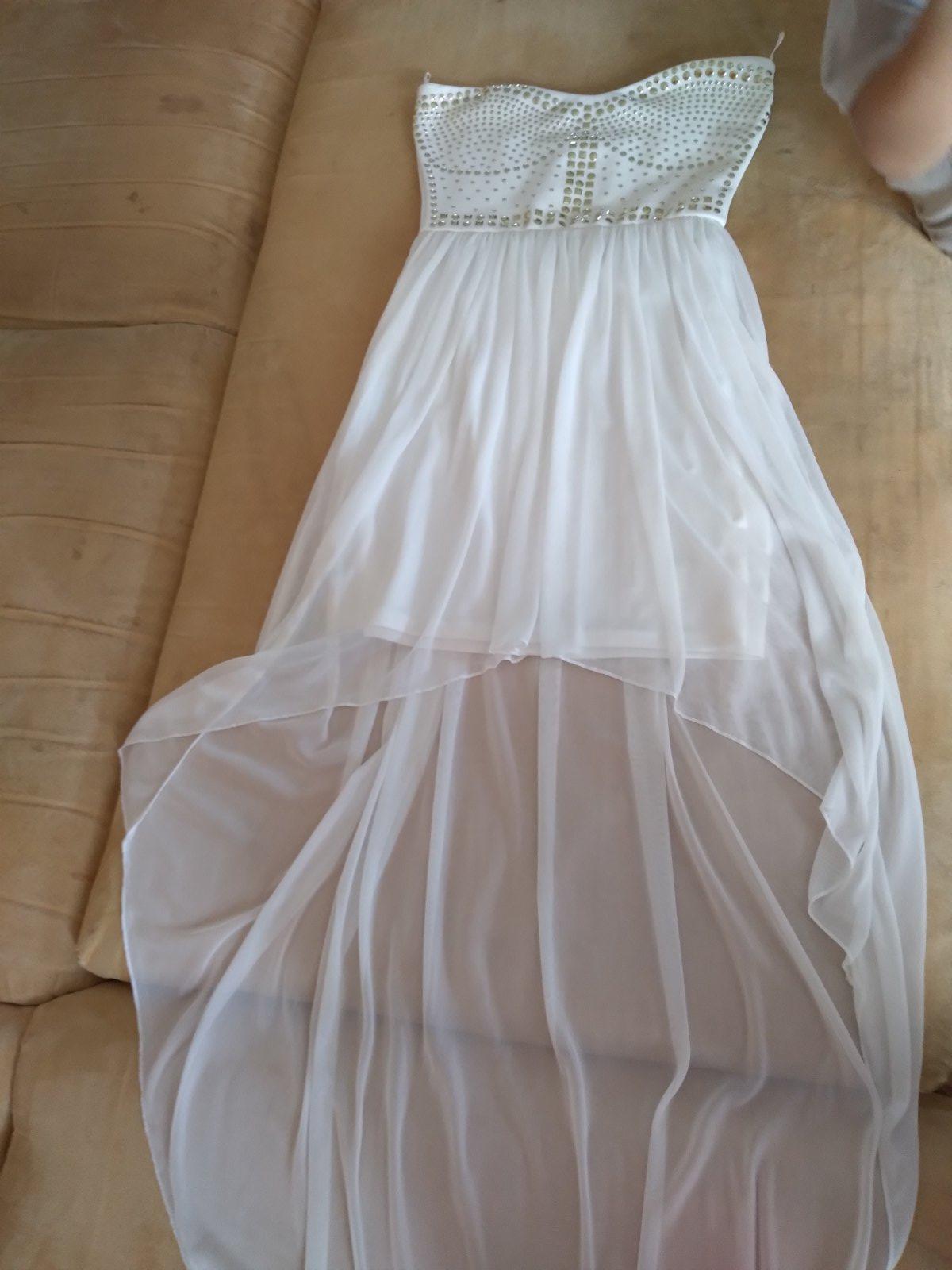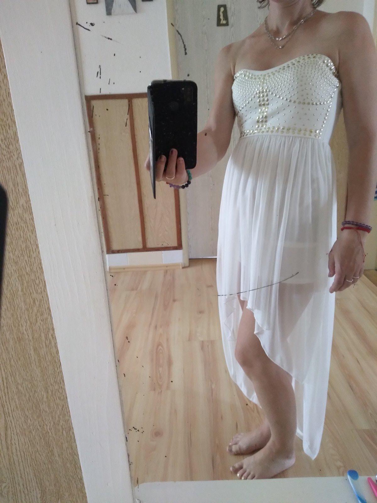 Predam nové spoločenské šaty s ozdobnými zlatými flitrami na dekolte, s predĺženou vrchnou sieťovanou sukňou, na chrbte je guma na lepšie držanie na tele