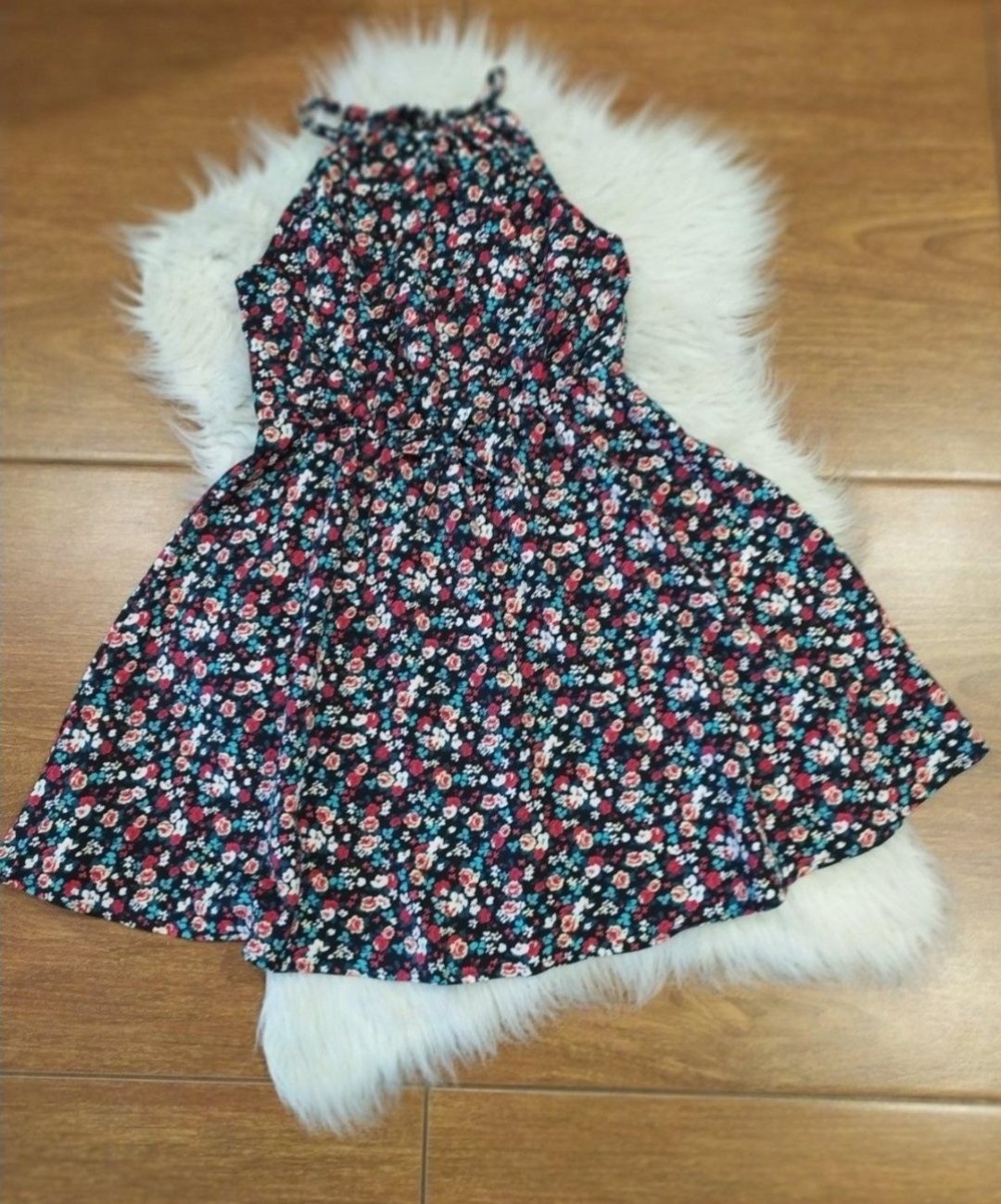 Krásne,kvetovane letné šatky,zapínanie na zips cez chrbatik, doplnené opaskom,široká kruhová sukňa, elastické.Vel 128/134 Dl 69,šírka 34*2 293,v