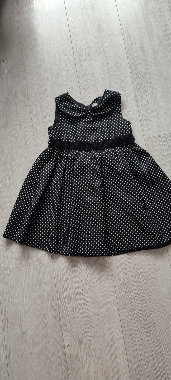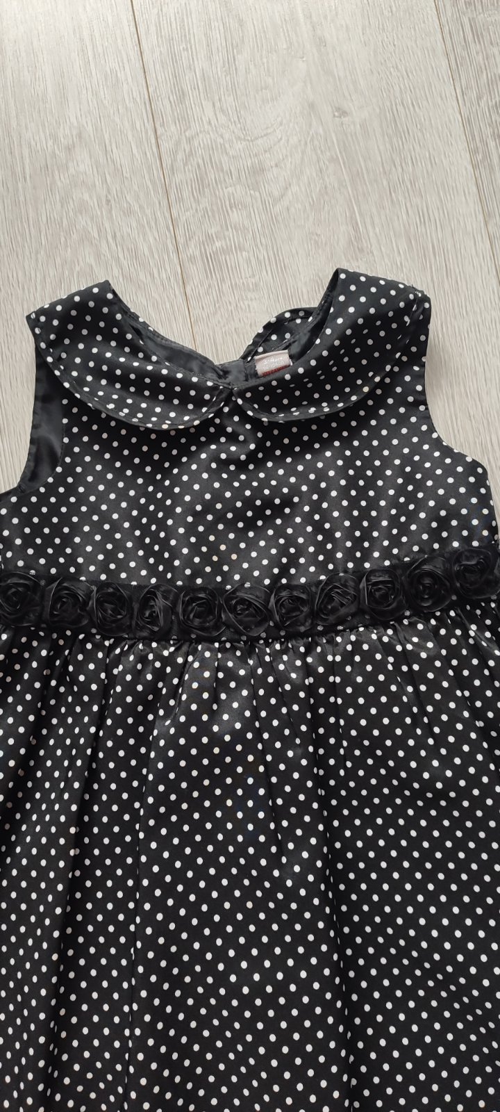 Krásne dievčenské šaty s motívom kohutej stopy . V páse gumička , dva volant zdobené ciernymi brnbolcami ,zapínanie na gombík vzadu Na logu chýba zopár kamienkov, na prvý pohľad to nieje vidieť , ...