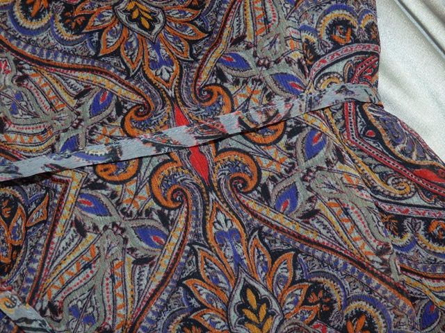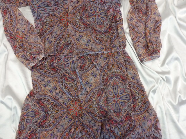 Kvalitné vzorované šaty s tenkým opaskom, dlhý rukáv, podšité len v trupovej časti, materiál 100% polyester, super stav, ako nové.
