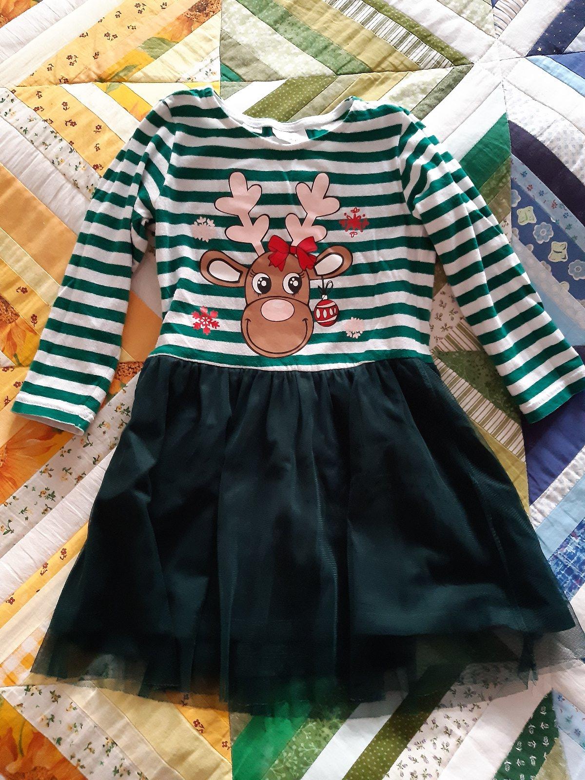 Milé vianočné šaty so sobíkom v peknom stave bez poškodení. Veľkosť 104/110