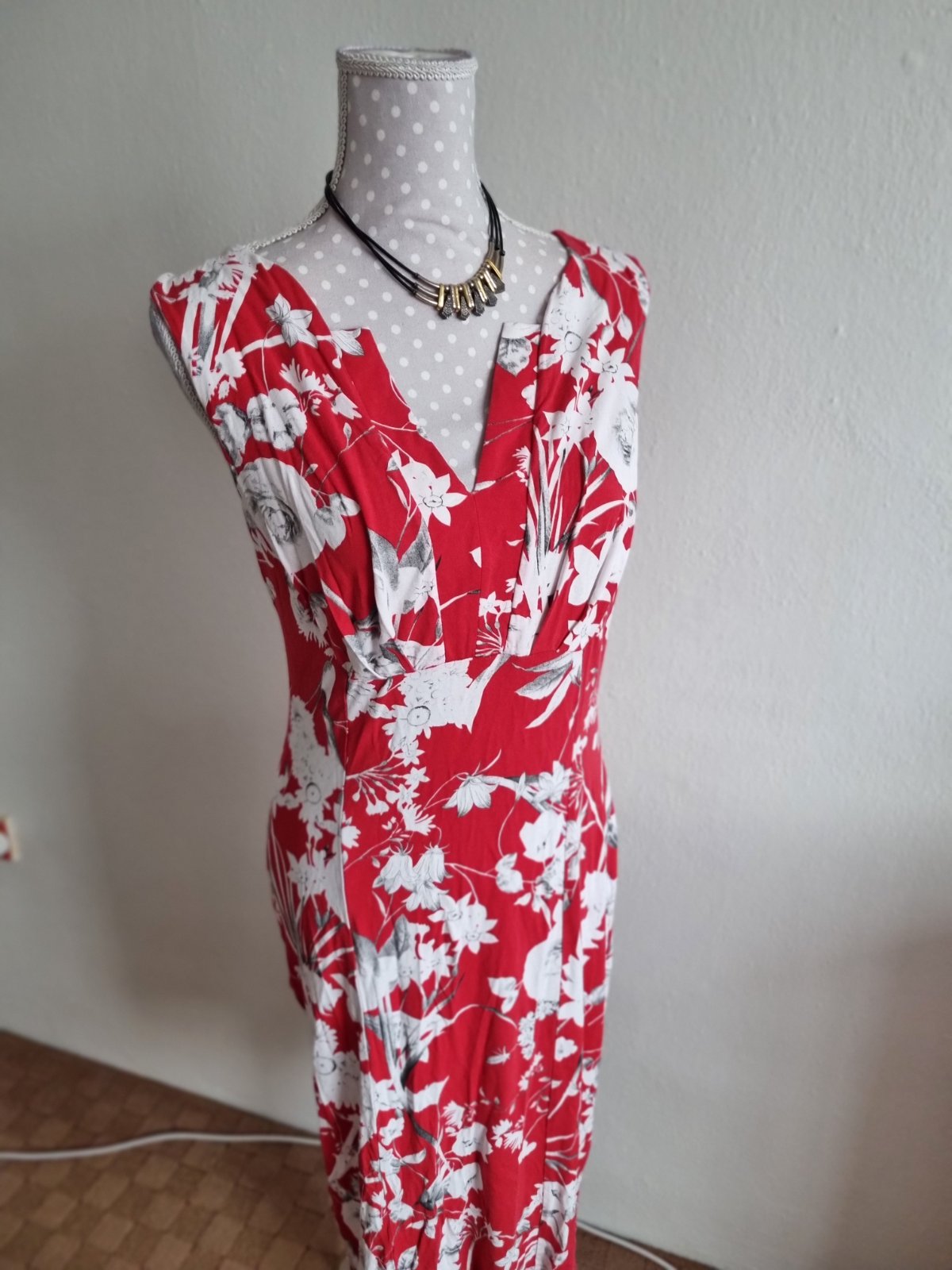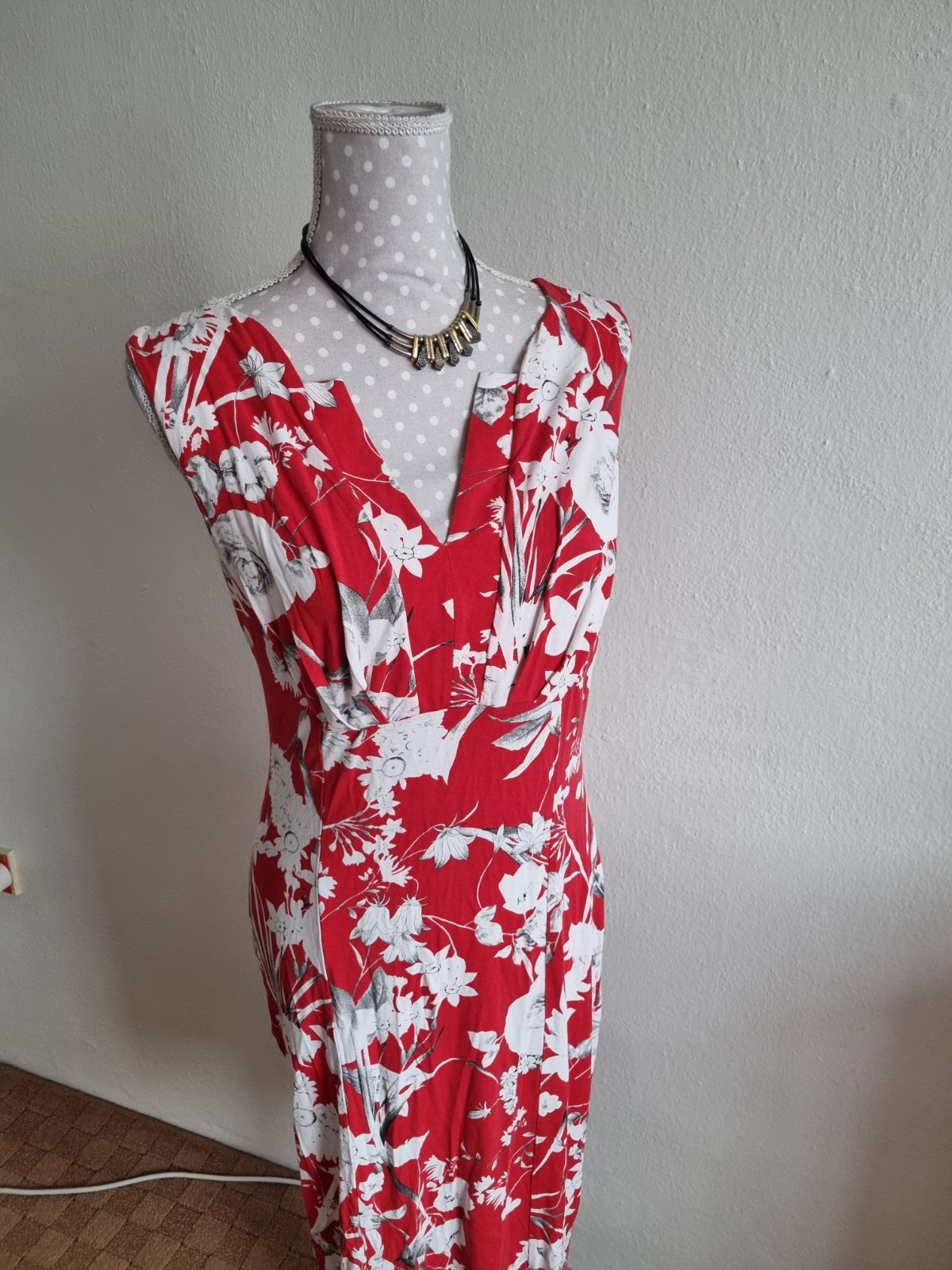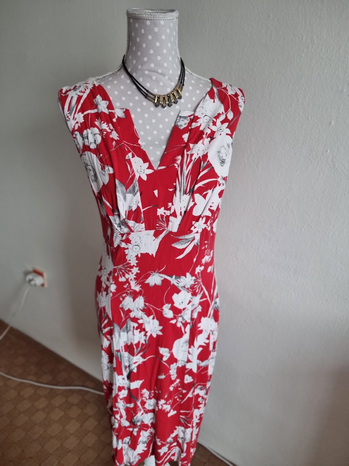 Červeno-biele elastické šaty Chantall veľ. 40