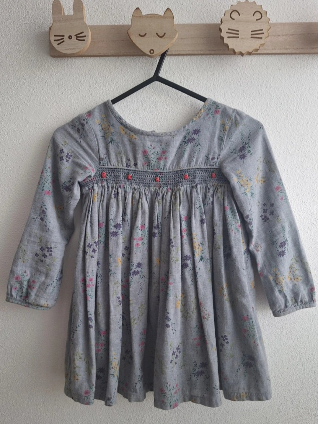 rolákové šaty značky Next, veľkosť uvedená na 4 roky (104), celková dĺžka je 55cm, šírka pod ramenami je 32cm, dĺžka rukáva je 36 cm. Majú jemné žmolky, inak bez poškodení.