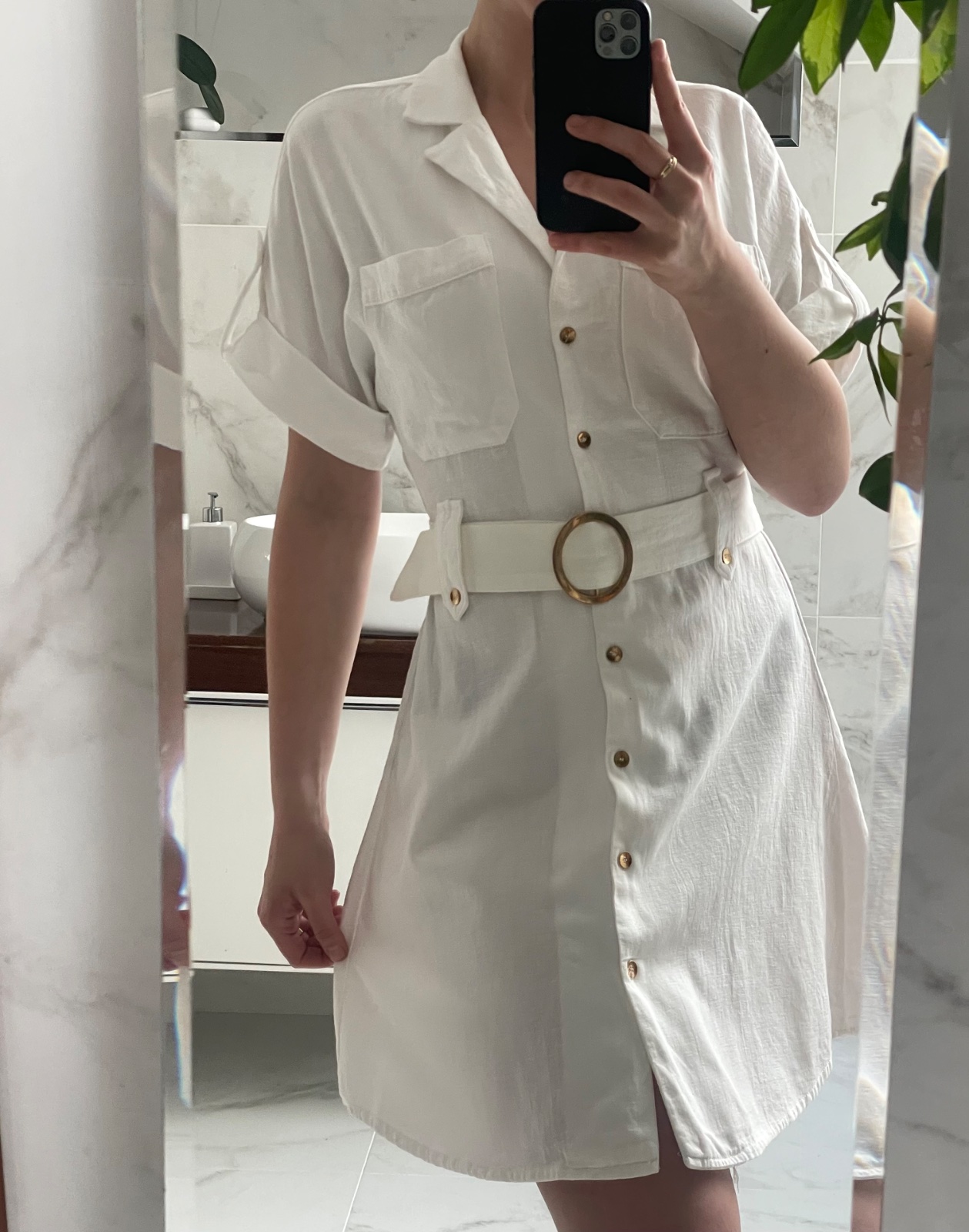 Letné biele šaty z ľanovej zmesi, značky Reserved.